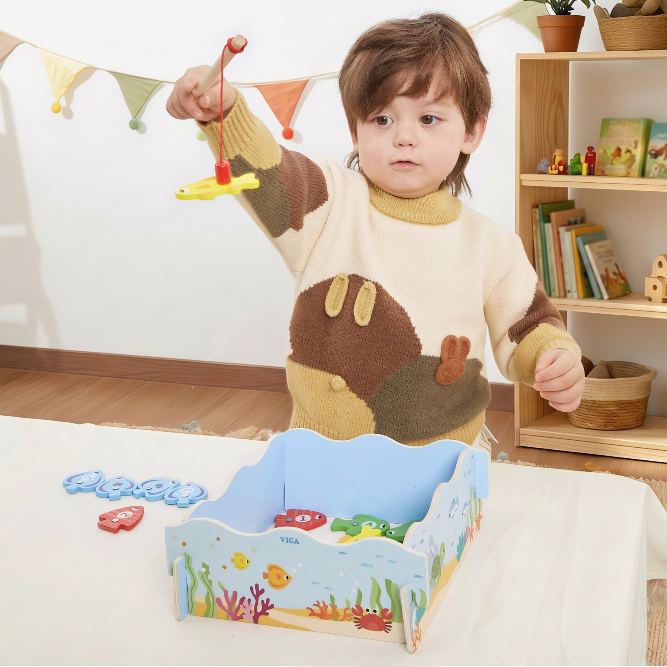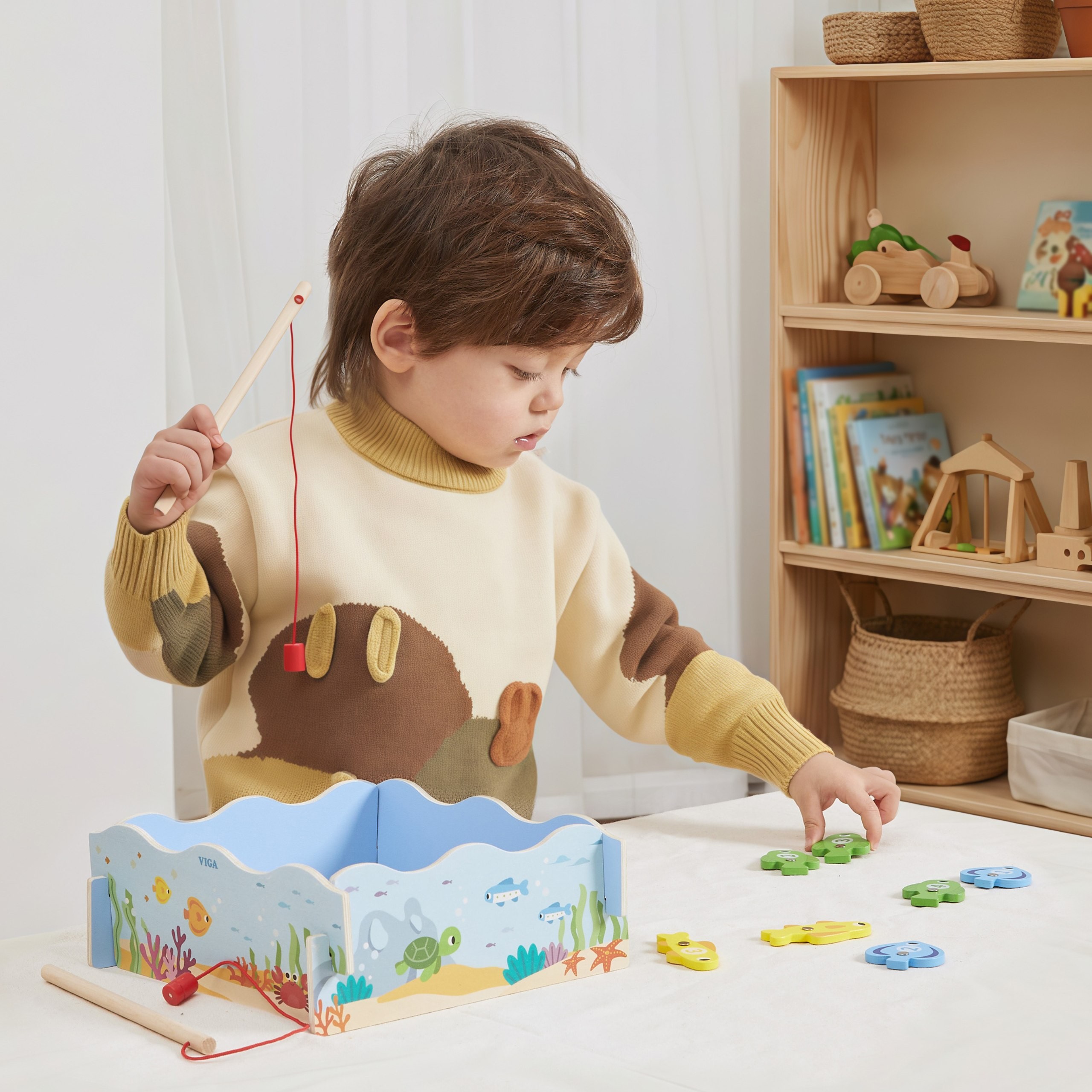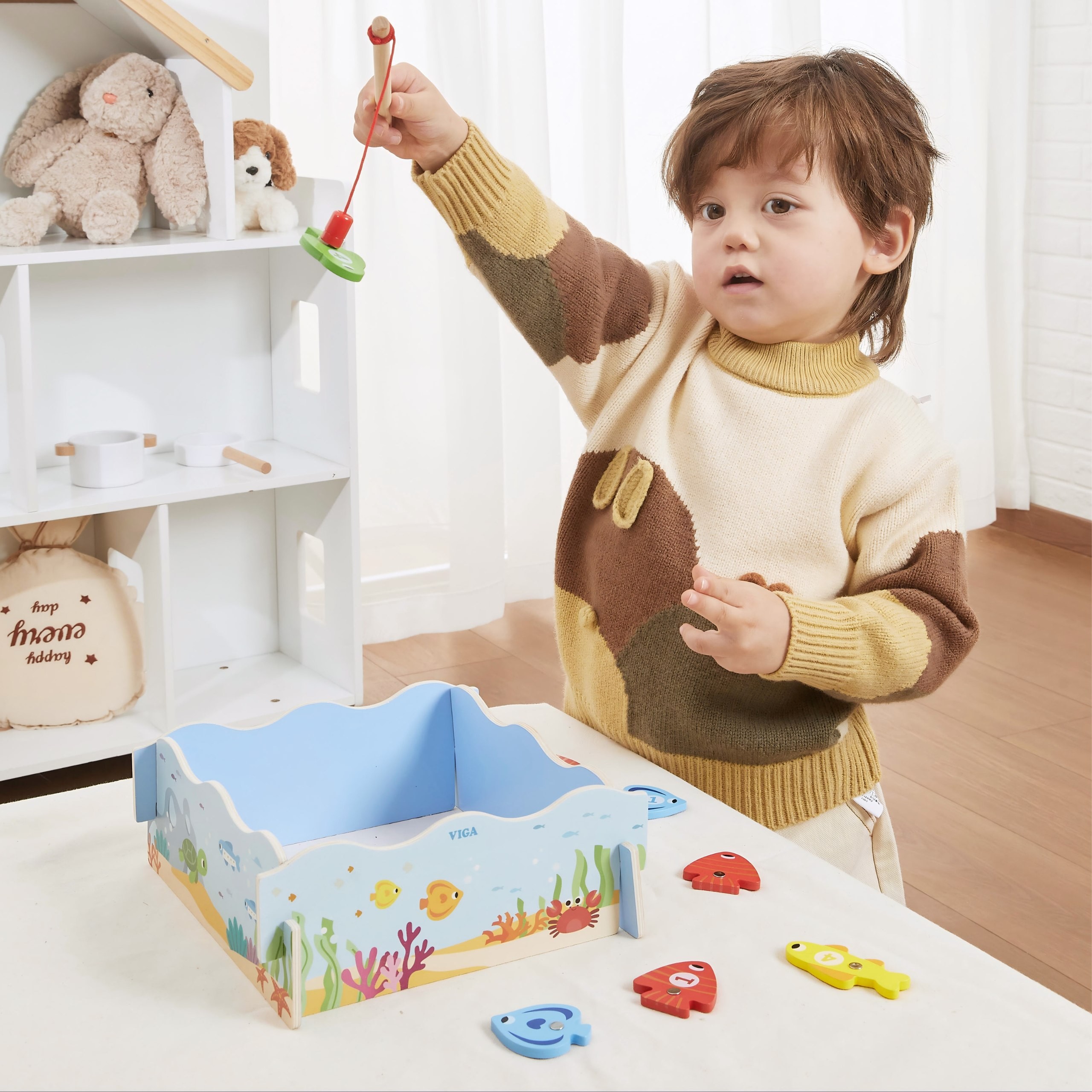 The wooden magnetic Fishing game from Viga lets your little one catch colorful fish using a safe, magnetic fishing rod. Each fish is numbered, introducing your child to the world of numbers and colors. The box acts as a pond and, after playtime, serves as storage for all the pieces. It’s an ideal gift for children over 18 months , developing manual skills and eye-hand coordination.