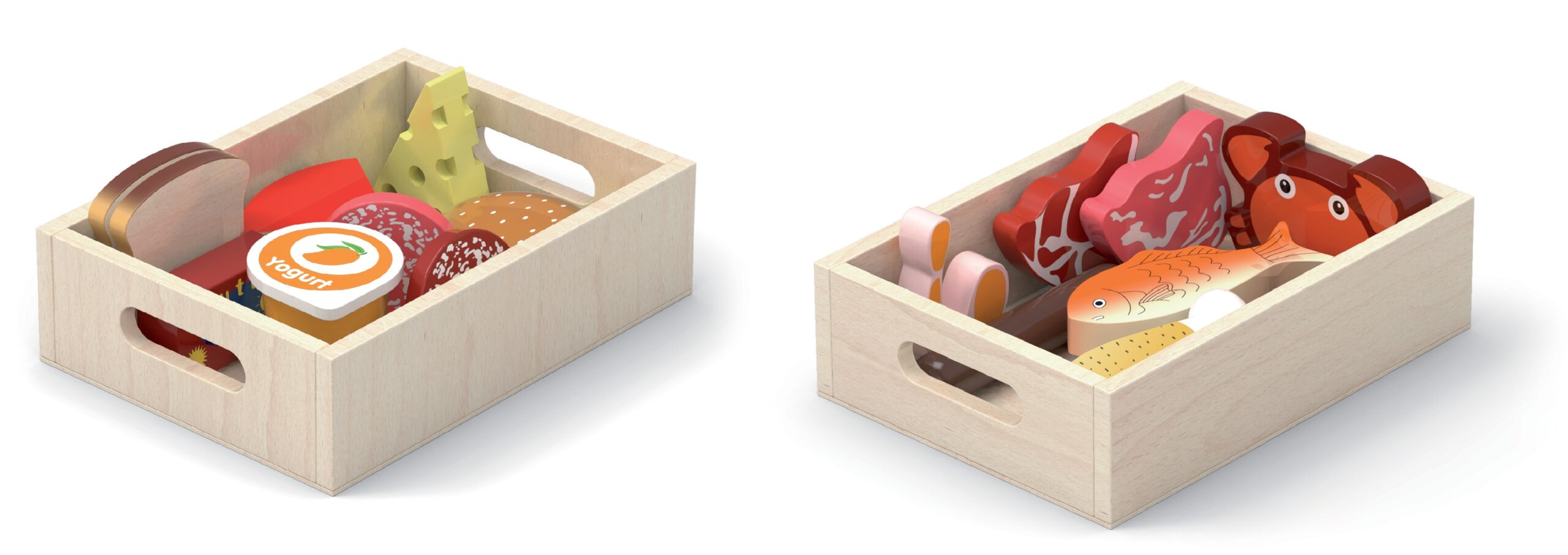 Pagrindinis » Parduotuvė » VIGA Medinis maisto produktų rinkinys dėžutėse Pusryčiai Žuvis Mėsa Pieninė