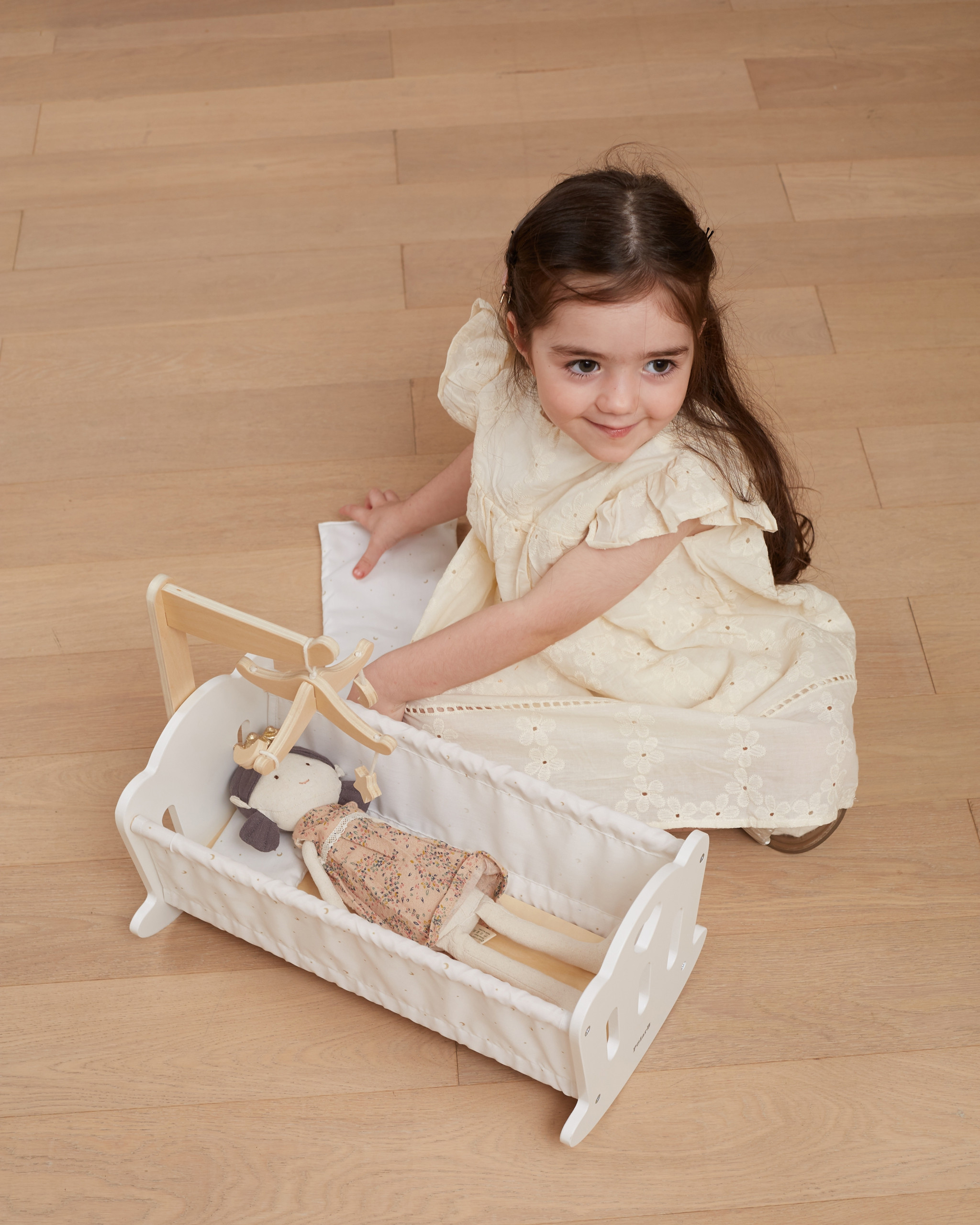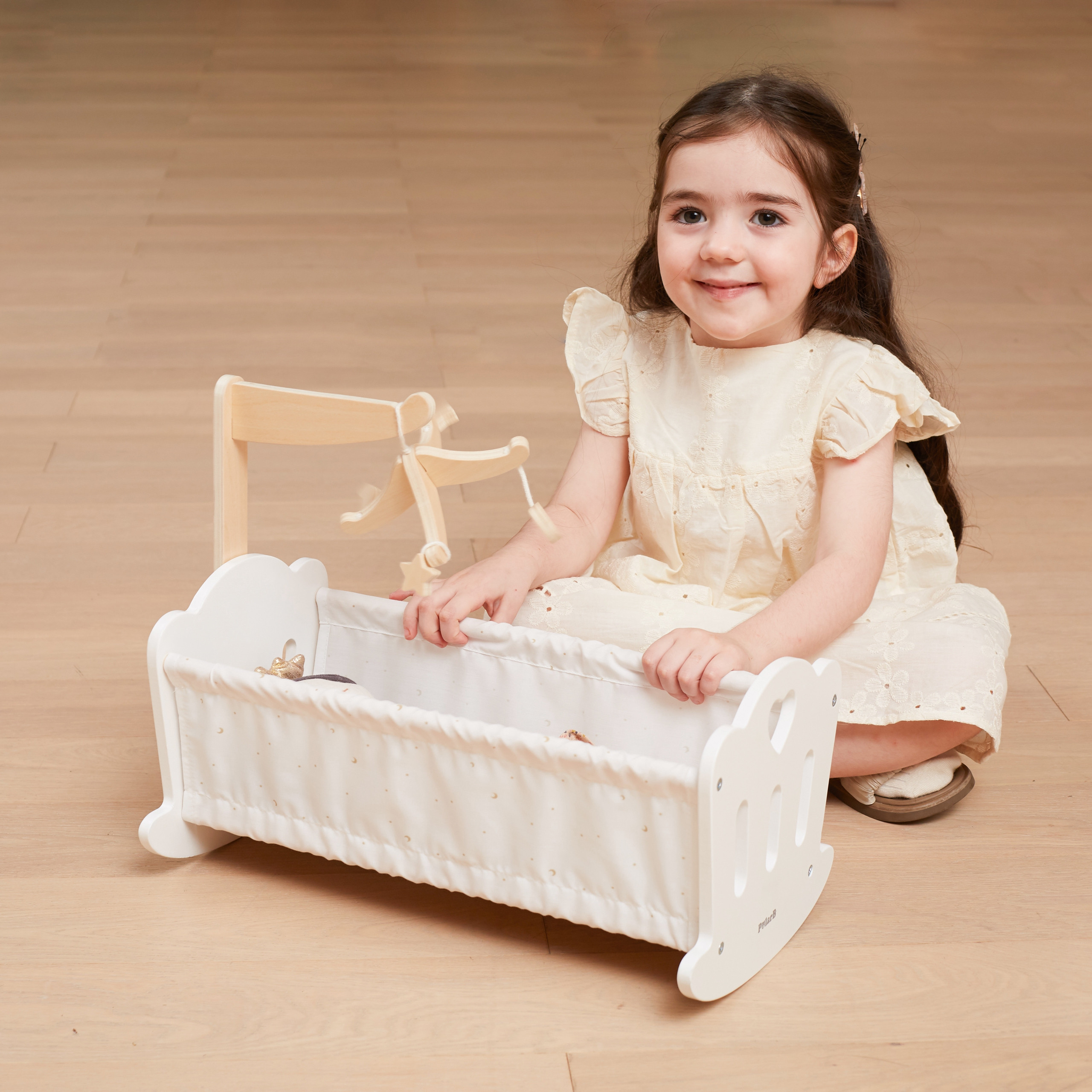 Padėkite savo lėlę miegoti šiame gražiai pagamintame lopšyje iš VIGA PolarB serijos. Lopšyje yra minkšta medvilninė pagalvėlė ir antklodė su saldžiu žvaigždžių ir mėnulio raštu, taip pat žavingas lopšio karuselės žaisliukas. Tinka lėlėms iki 38 cm aukščio.