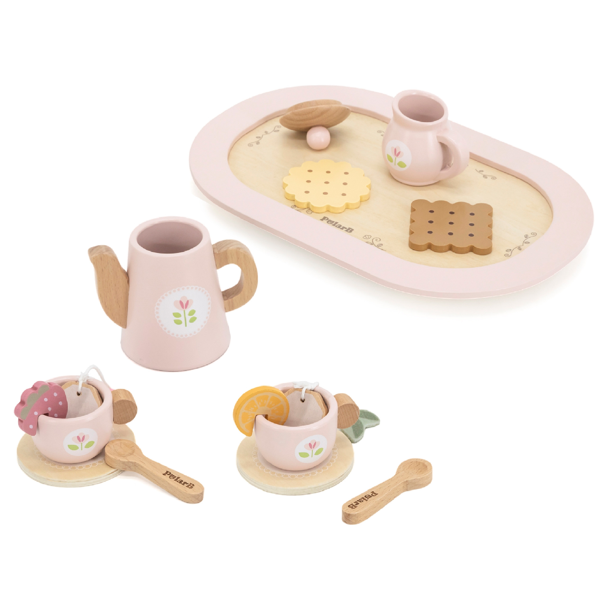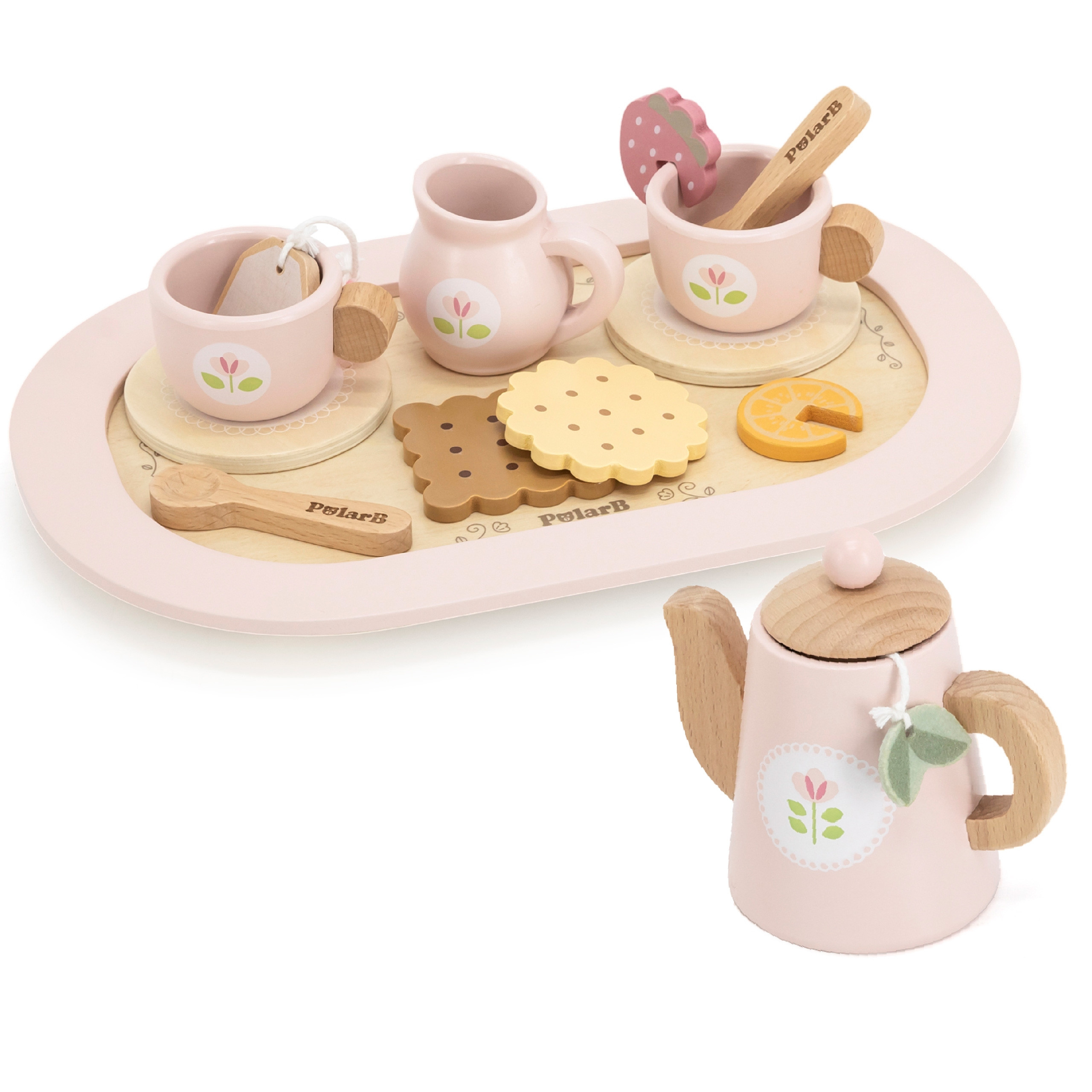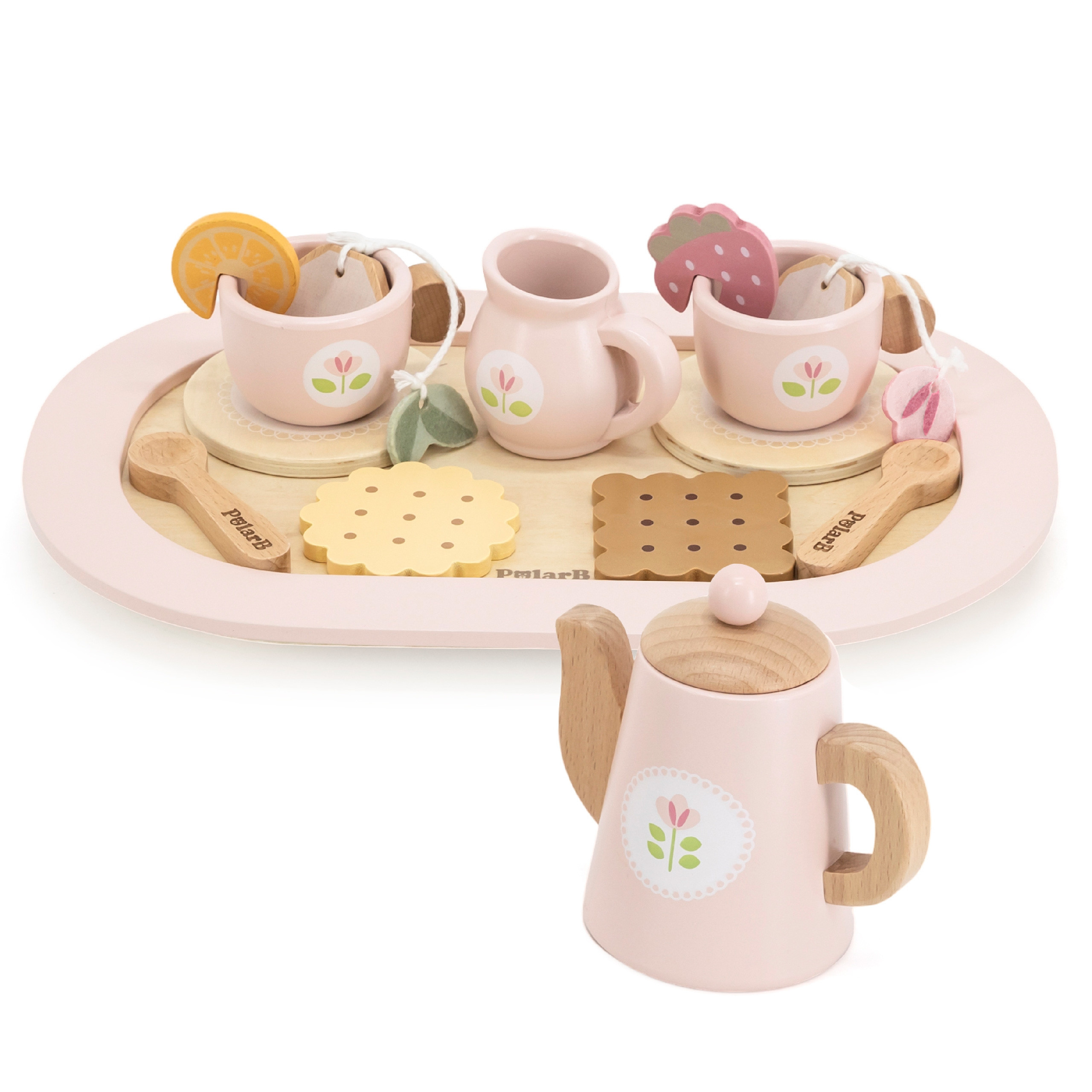 PolarB medinis arbatos servizas – žavingas rinkinys, skatinantis vaikus rengti savo arbatos vakarėlius. Rinkinyje yra medinis arbatinukas, puodeliai su lėkštutėmis, taip pat įvairūs priedai, tokie kaip arbatžolės maišeliai, citrinos griežinėlis ar braškės. Kiekvienas elementas kruopščiai sukurtas, kad skatintų vaiko vaizduotę ir lavintų socialinius įgūdžius. Dėl tvirto konstrukcijos šis elegantiškas rinkinys suteikia valandų valandas kūrybiško žaidimo, imituojant suaugusiųjų veiklas.