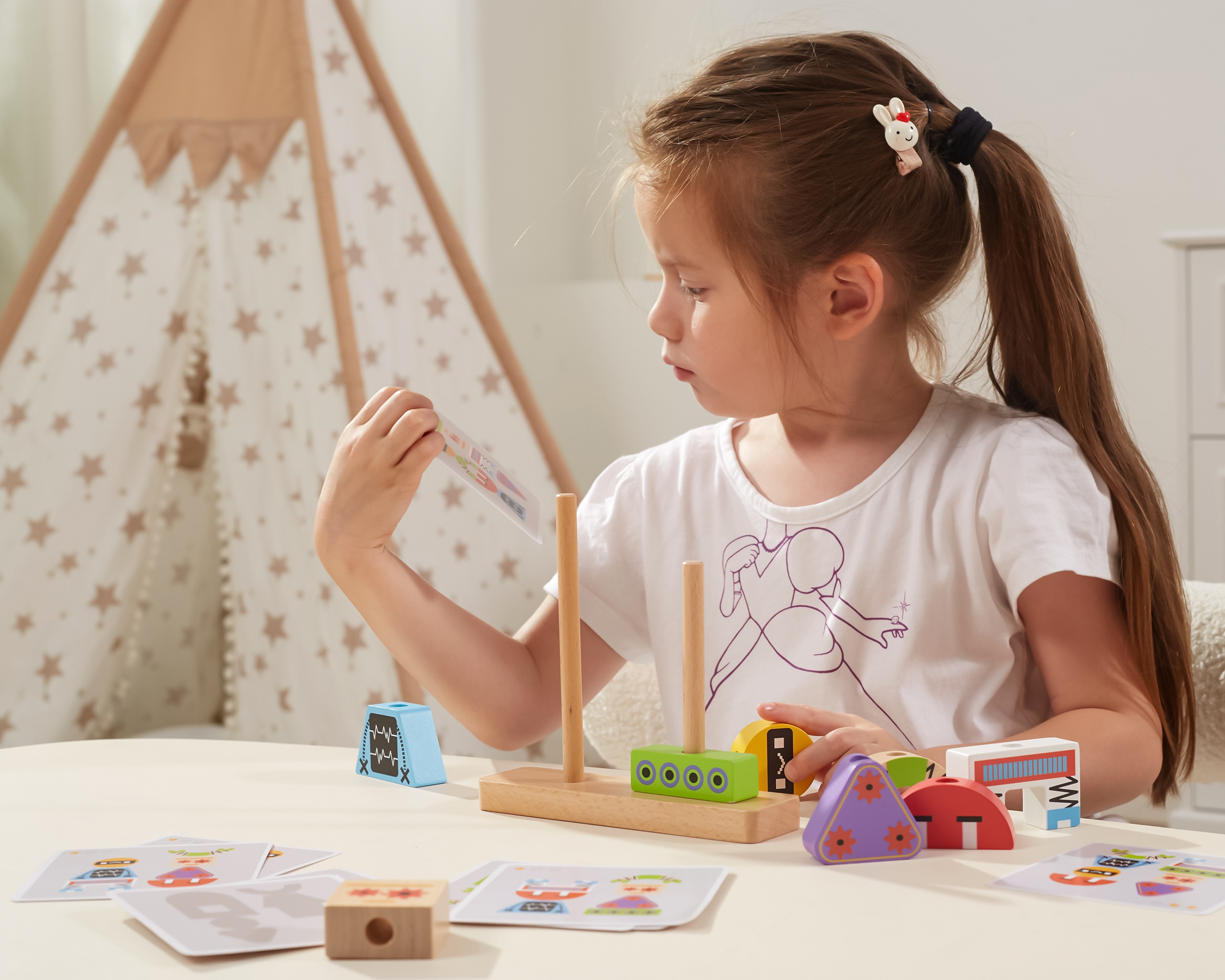 VIGA Robotų piramidės dėlionė + raštų kortelės, 8 vnt.