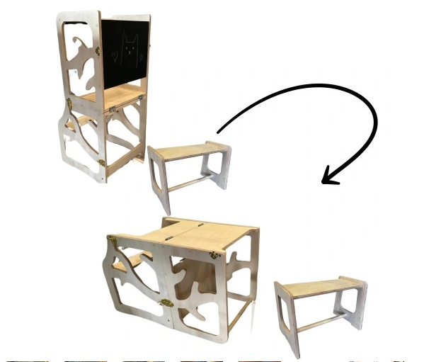 Kodėl praktiška? Nes mes viską apgalvojome nuo A iki Z ir sukūrėme unikalų 4 viename produktą rinkoje, kuris ne tik praverčia gaminant maistą, bet ir gali būti naudojamas kaip stalas ar kėdė . Be to, jis turi ir kreidinę lentą , tad nei virtuvėje, nei namuose nuoboduliui vietos neliks!