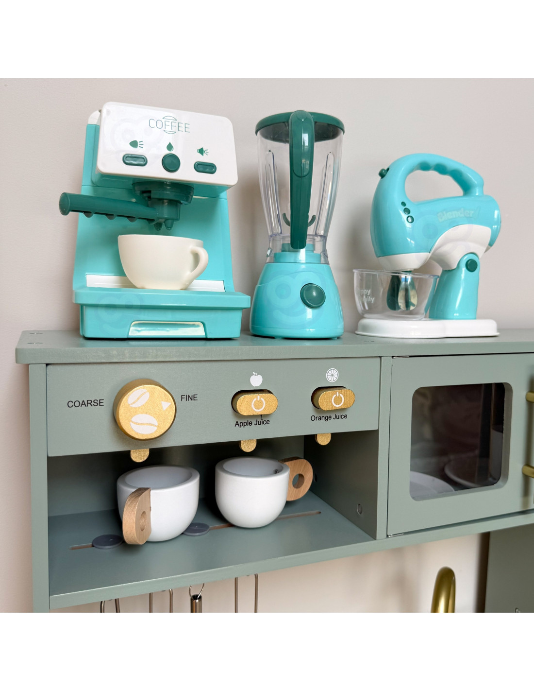 Pagrindinis » Parduotuvė » WOOPIE 3 viename buitinės technikos rinkinys: kavos aparatas, mikseris, blenderis su garso ir šviesos efektais