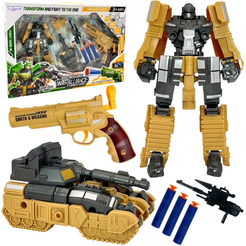 WOOPIE 3 viename transformuojantis roboto tankas ir strėlyčių paleidėjas