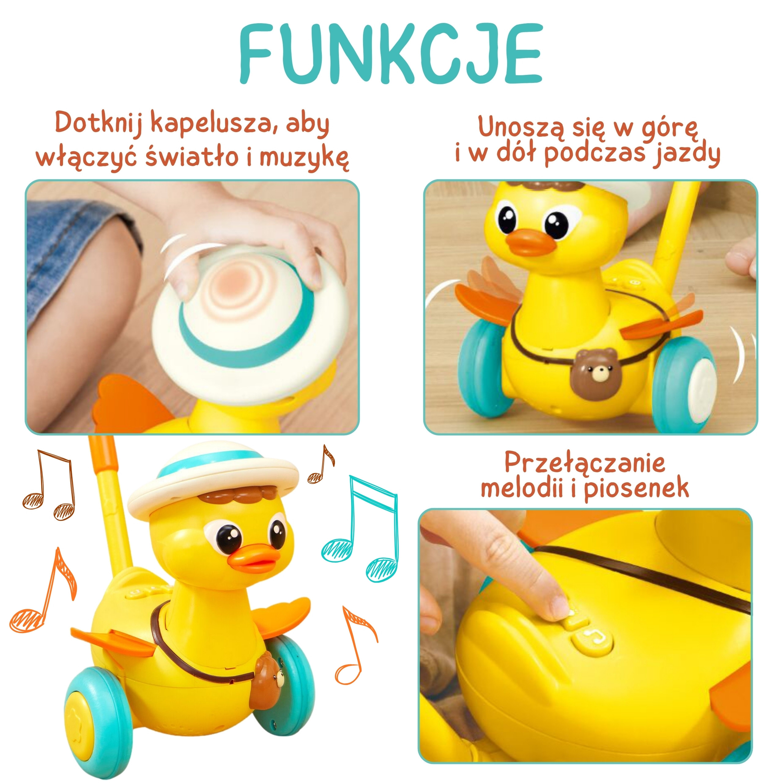 WOOPIE „Ančiukas“ stumiamas žaislas su lazdele, garso ir šviesos efektais