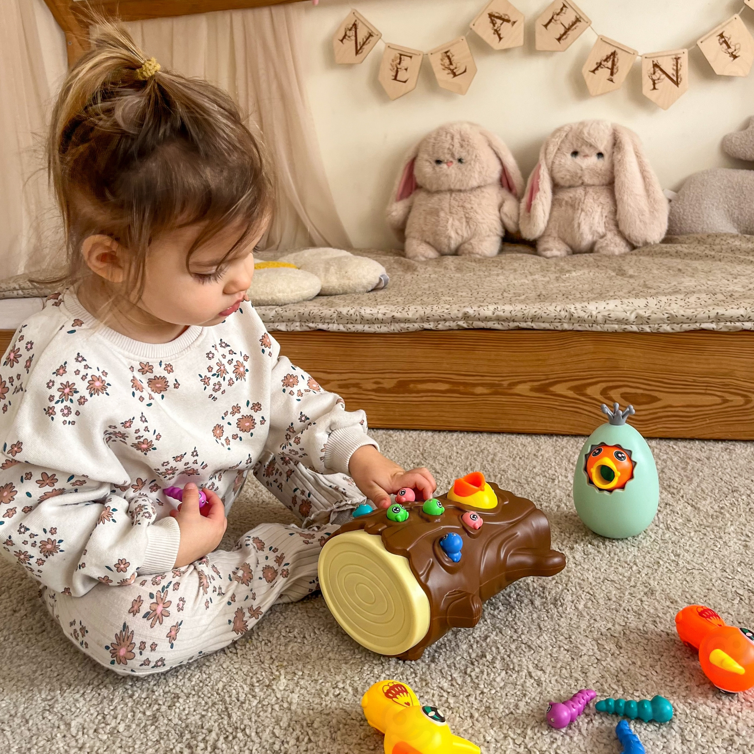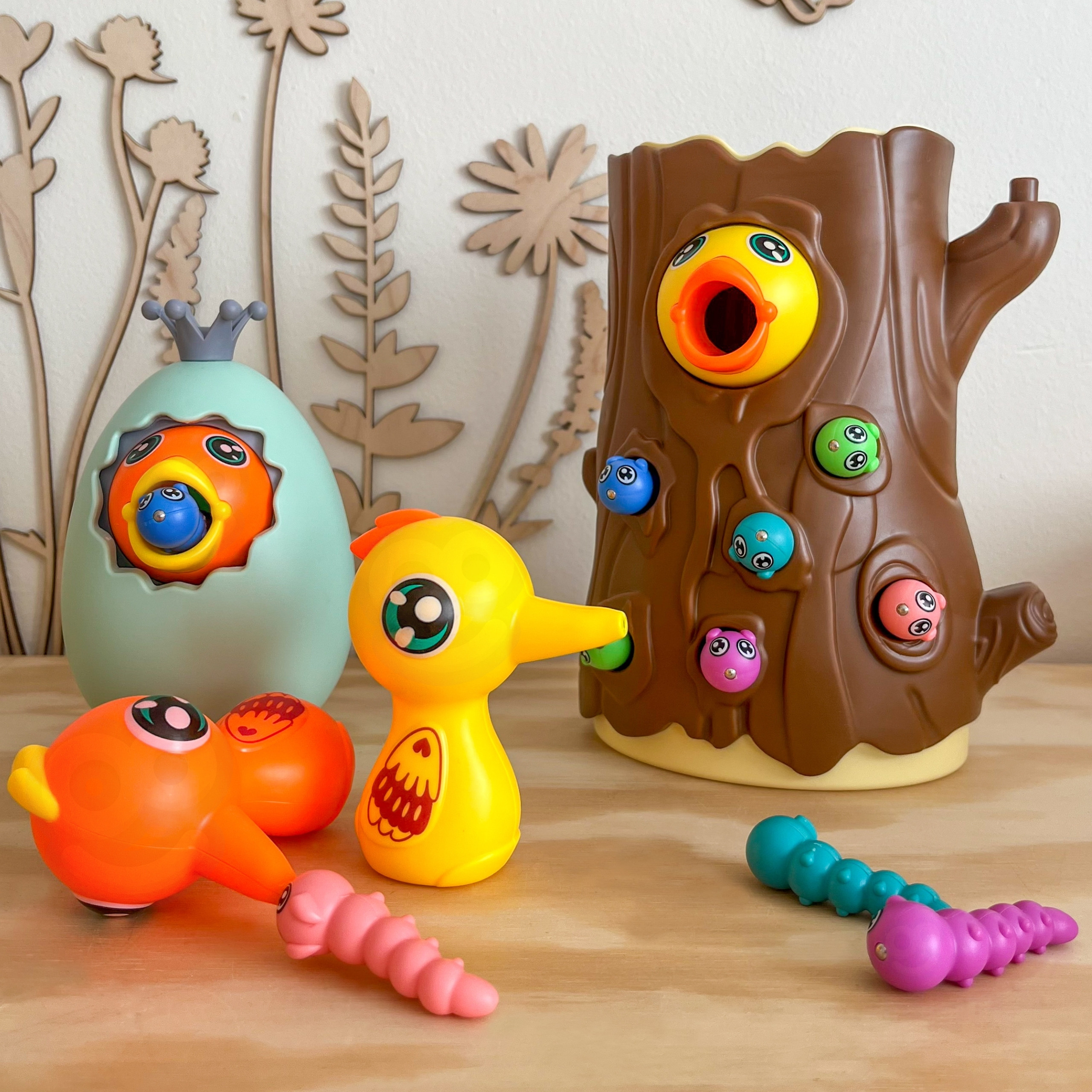 inovatyvus magnetinis žaidimas – vabaliukų gaudymas ir jauniklio maitinimas