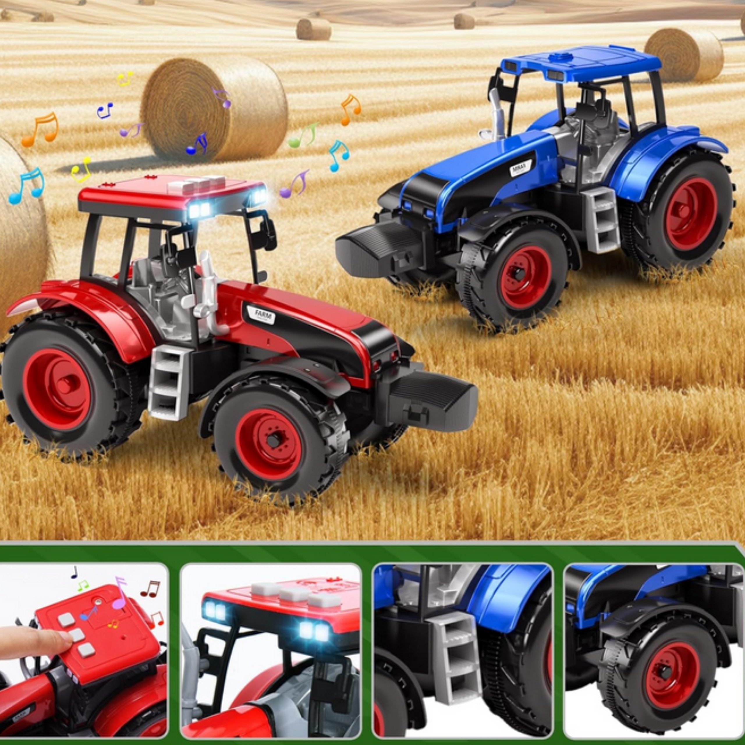 – LED šviesos ir tikroviški garsai vilkike ir viename traktoriuje
