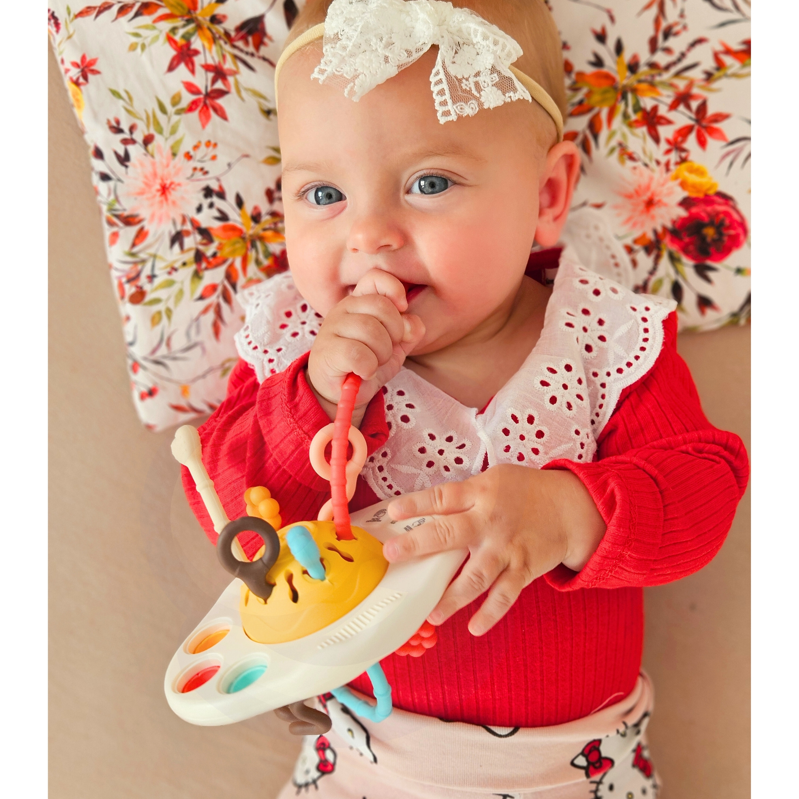 Pagrindinis » Parduotuvė » „WOOPIE BABY“ Montessori sensorinis žaislas – kramtukas, barškučiai ir daugiafunkcis „UFO“ žaislas