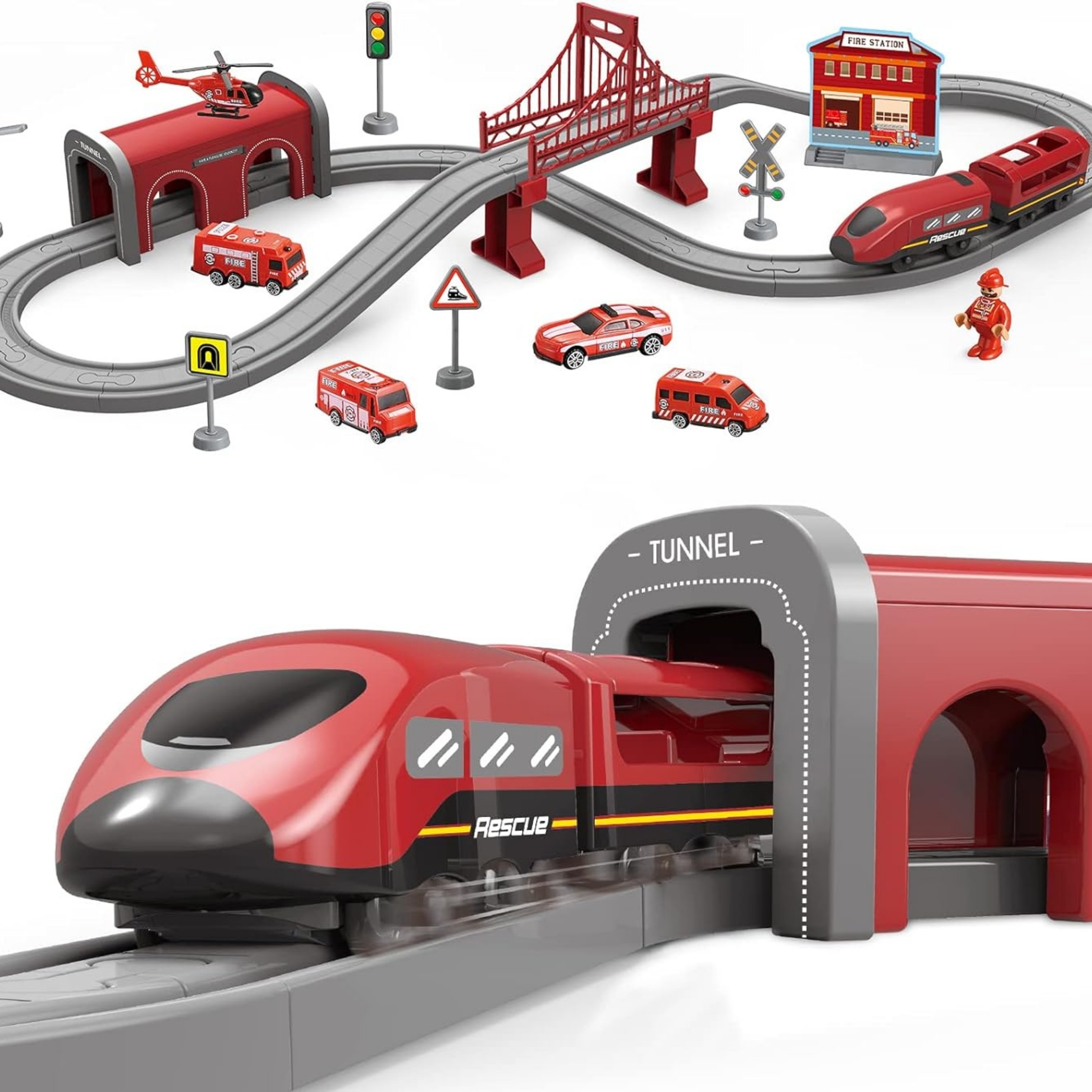 Įspūdingas prekės ženklo elektrinio funikulieriaus rinkinys Woopie tai tikras komandų centras mažiesiems statybininkams! Raudonasis greitasis traukinys supažindins jūsų vaiką su statybų pasauliu, maršruto planavimu ir savo žaidimo scenarijų kūrimu. Dėl savo didelės įrangos su tiltais, tuneliais, šviesoforais ir ugniagesių įranga jūsų mažylis gali sudaryti neribotą skaičių bėgių sistemų ir tada stebėti, kaip traukinys važiuoja per savo pradinį miestą. Tai žaislas, kuris sujungia tikro geležinkelio jaudulį su vaiko pasaulio kūrybiškumu