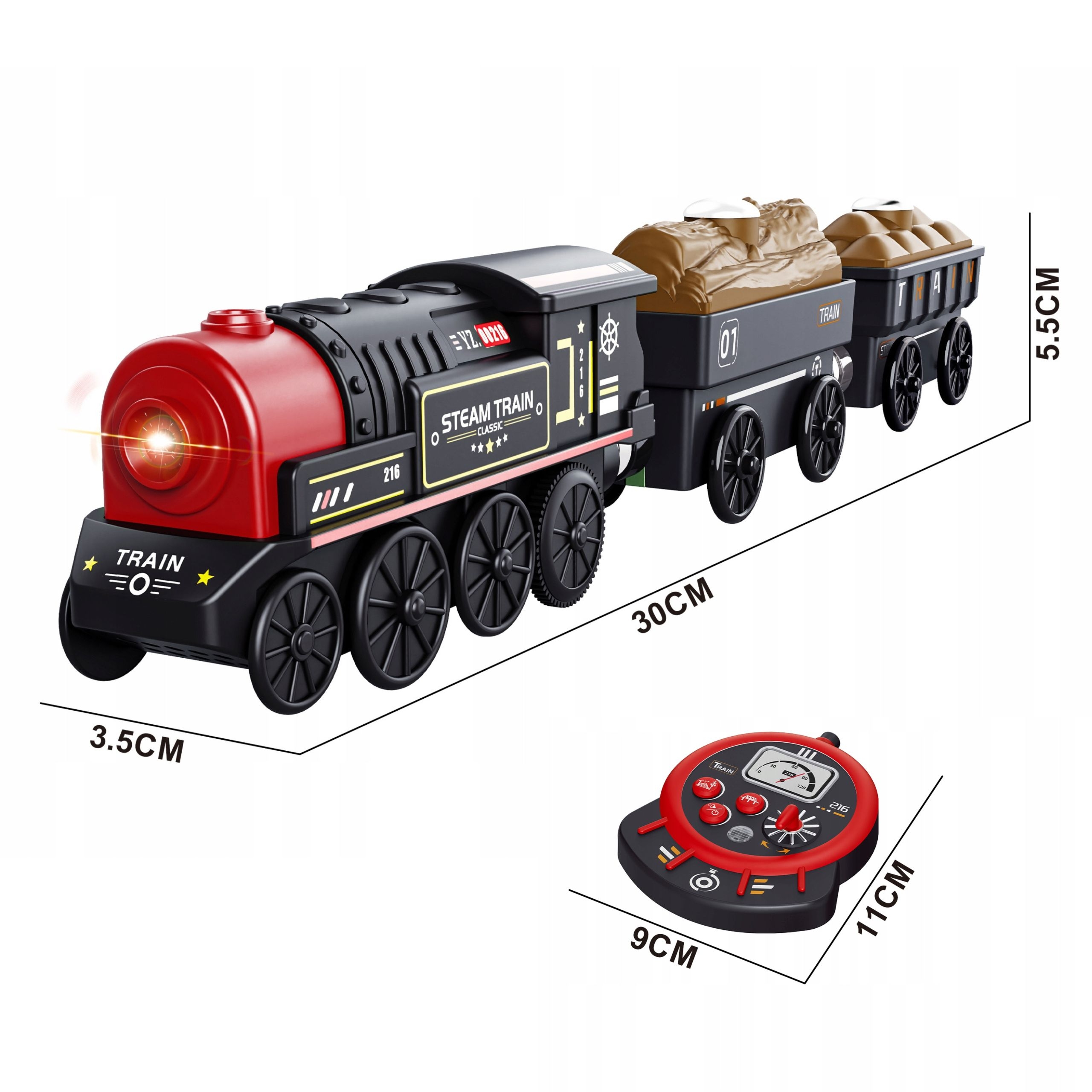 Paimkite savo vaiką į žavingą geležinkelių pasaulį su Retro nuotoliniu būdu valdomas geležinkelis iš Woopie prekės ženklo! Šitą 4 dalių komplektas tai suteikia daug kūrybinių pramogų, kuriose mažylis gali atlikti tikro vairuotojo vaidmenį. Realistiškas garvežys, apšvietimo efektai ir garsas, ypatingas valdymo pulto formos nuotolinio valdymo pultas jie linksmybes paverčia itin priklausomomis. Padėkliuką sudaro lokomotyvas ir du krovininiai vagonai. Žaislas skirtas vaikams nuo 3 metų amžiaus„. Nuotolinis valdymas vystosi rankiniai įgūdžiai ir akių ir rankų koordinavimas, ir tuo pačiu metu pristato daug valandų įdomių pramogų!