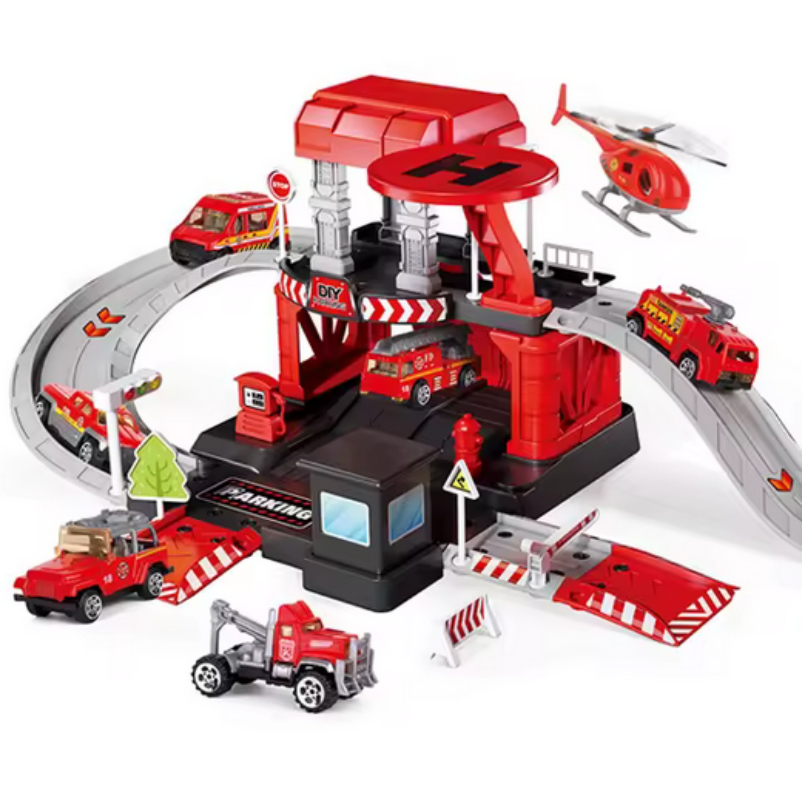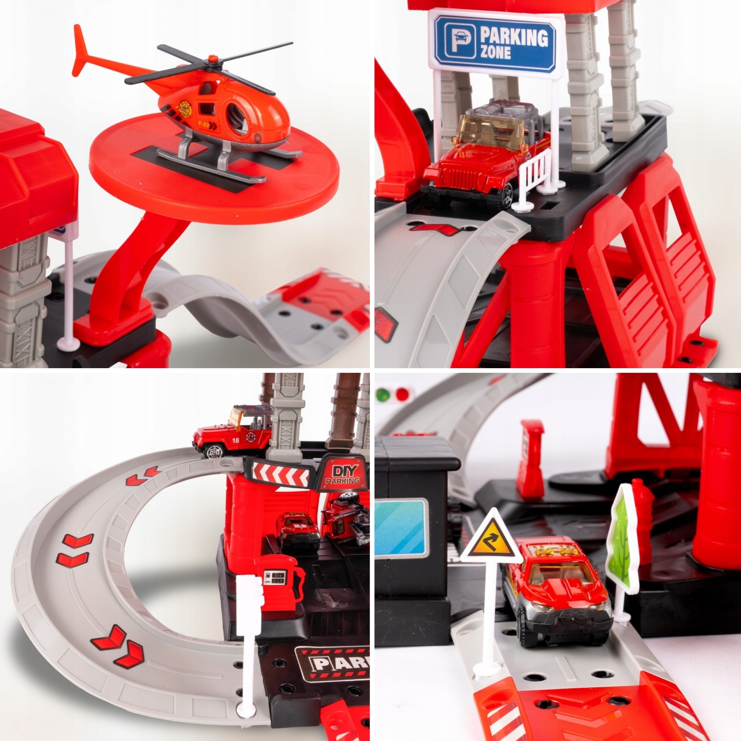 „Woopie “ gaisrinės automobilių stovėjimo aikštelė su priedais ir transporto priemonėmis yra fantastiškas teminis rinkinys kiekvienam mažajam automobilių ir uniformuotų tarnybų entuziastui! Šis žaislas džiugina detalių gausa , detalių skaičiumi, ryškiomis spalvomis ir daugybe žaidimo galimybių. Dviejų aukštų automobilių stovėjimo aikštelė su rampomis, sraigtasparnio nusileidimo aikštele ir daugybe priedų leidžia vaikams kurti savo žaidimo scenarijus , kuriuos riboja tik jų vaizduotė. Trys metaliniai automobiliai ir sraigtasparnis leidžia naudotis visomis garažo funkcijomis, todėl galima smagiai leisti laiką su broliais ir seserimis ar draugais, taip pat žaisti mažojo ugniagesio vaidmenimis.