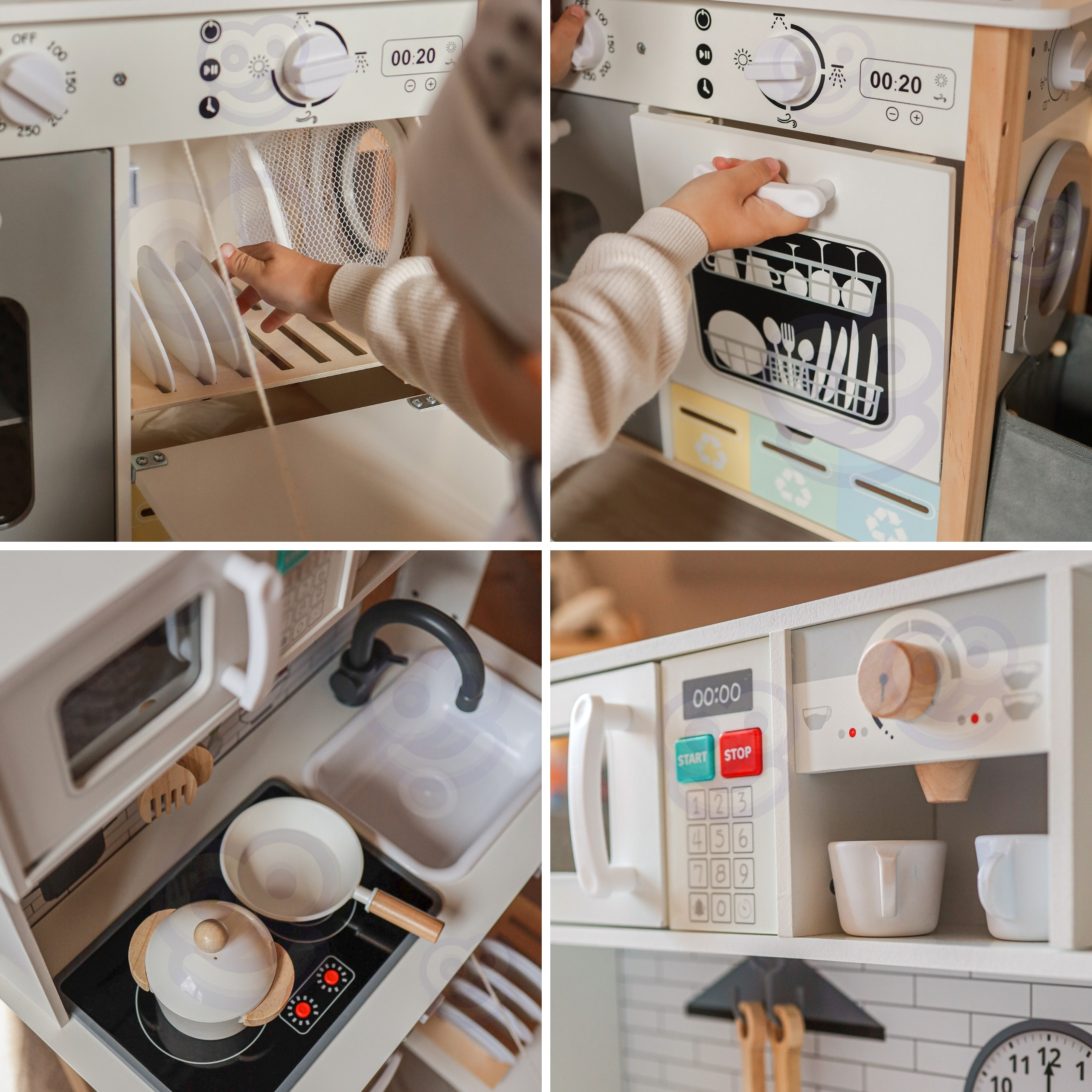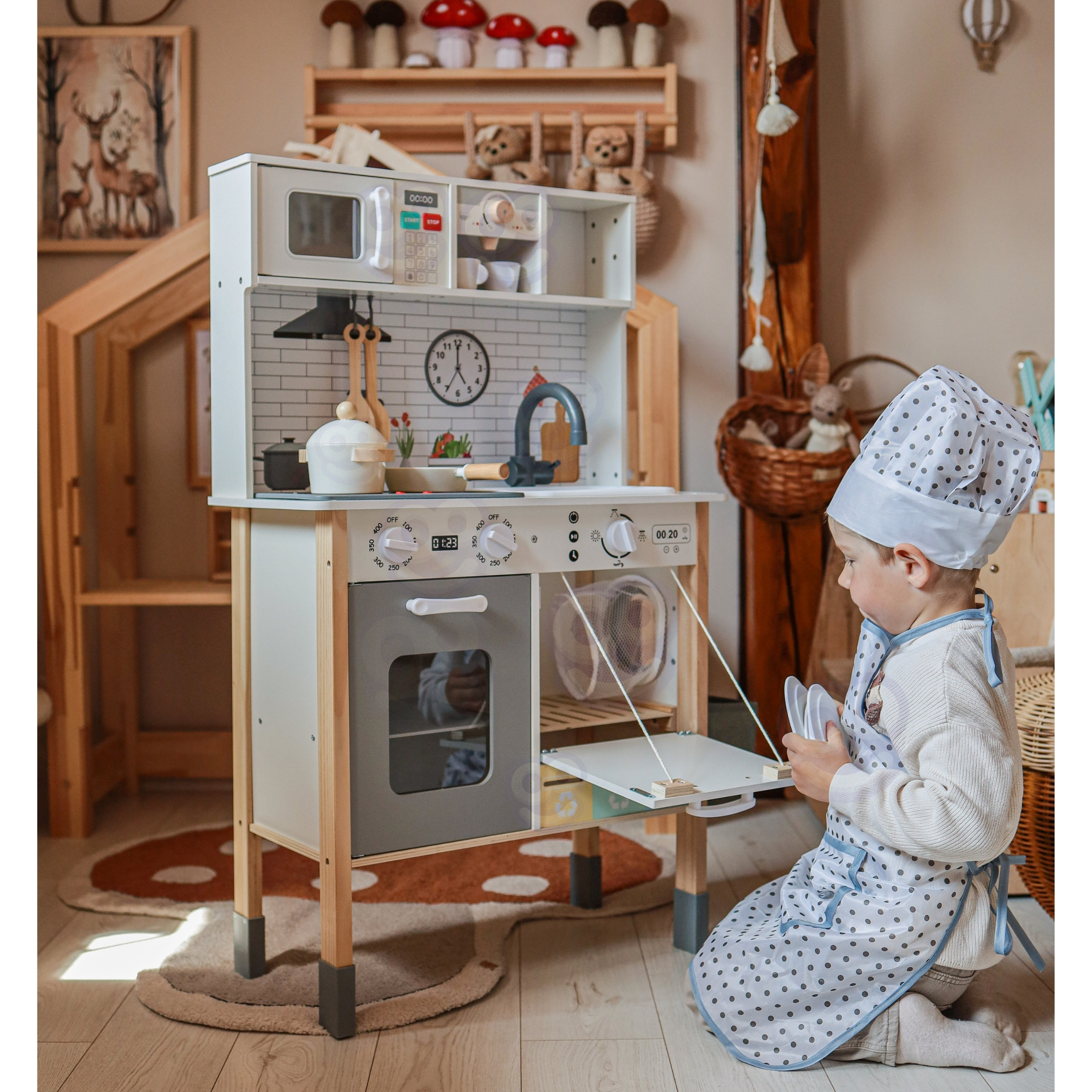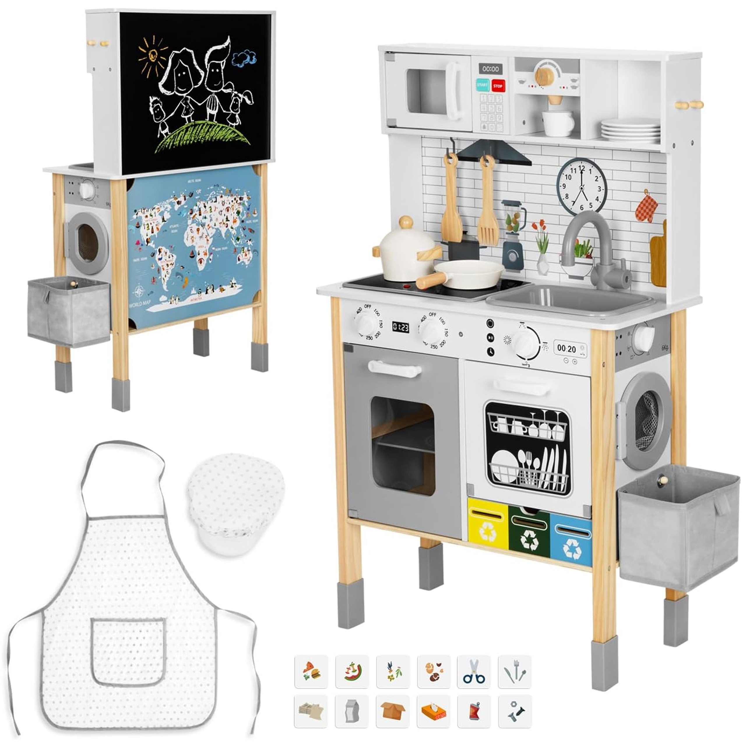 Pagrindinis » Parduotuvė » WOOPIE GREEN 9-in-1 medinė interaktyvi virtuvė su skalbimo mašina ir balta lenta