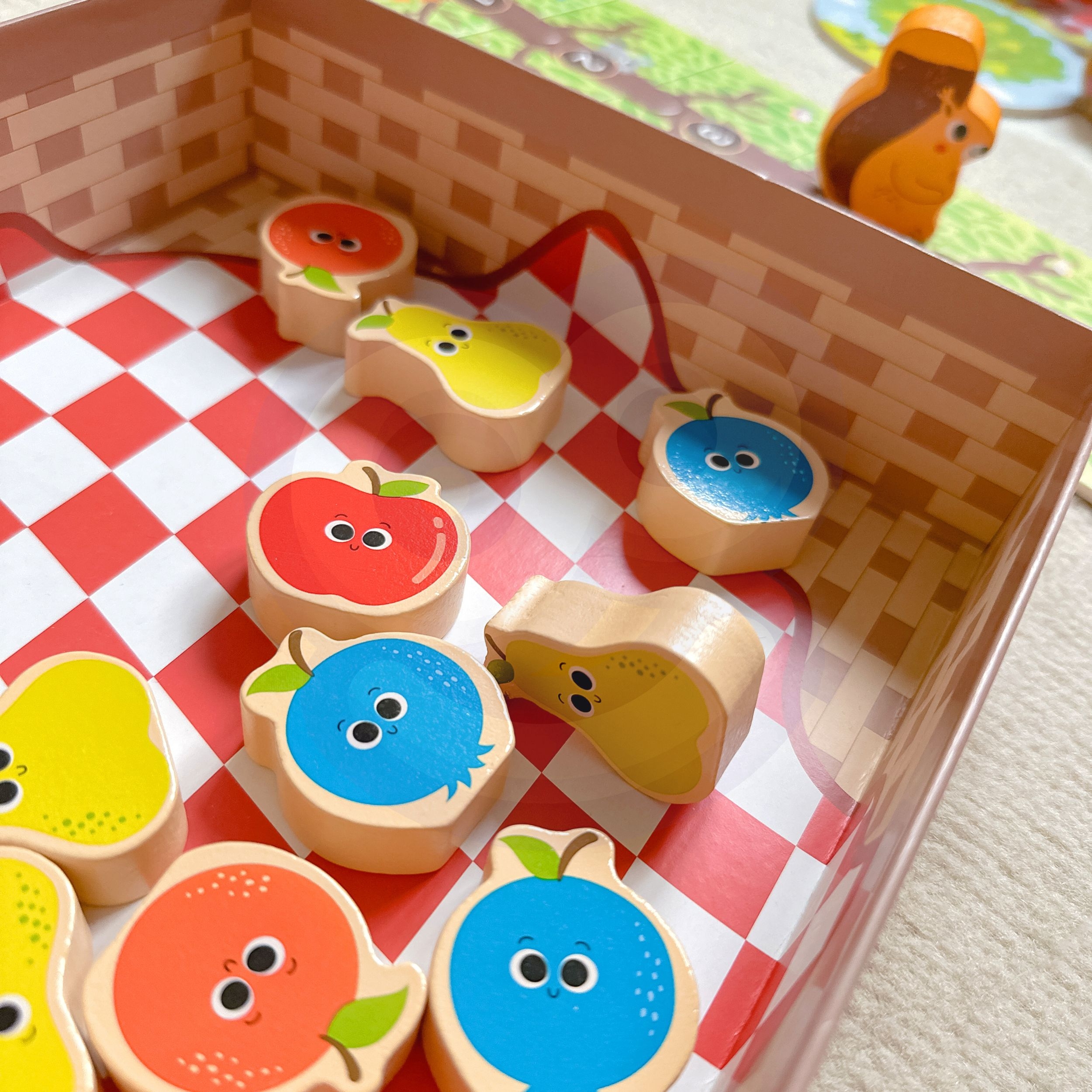 Žaidimo pabaiga : žaidimas baigiasi, kai visi vaisiai yra krepšyje arba kai voverė „nugali“ žaidėjus, t. y. vaisiai padedami atgal ant medžio.