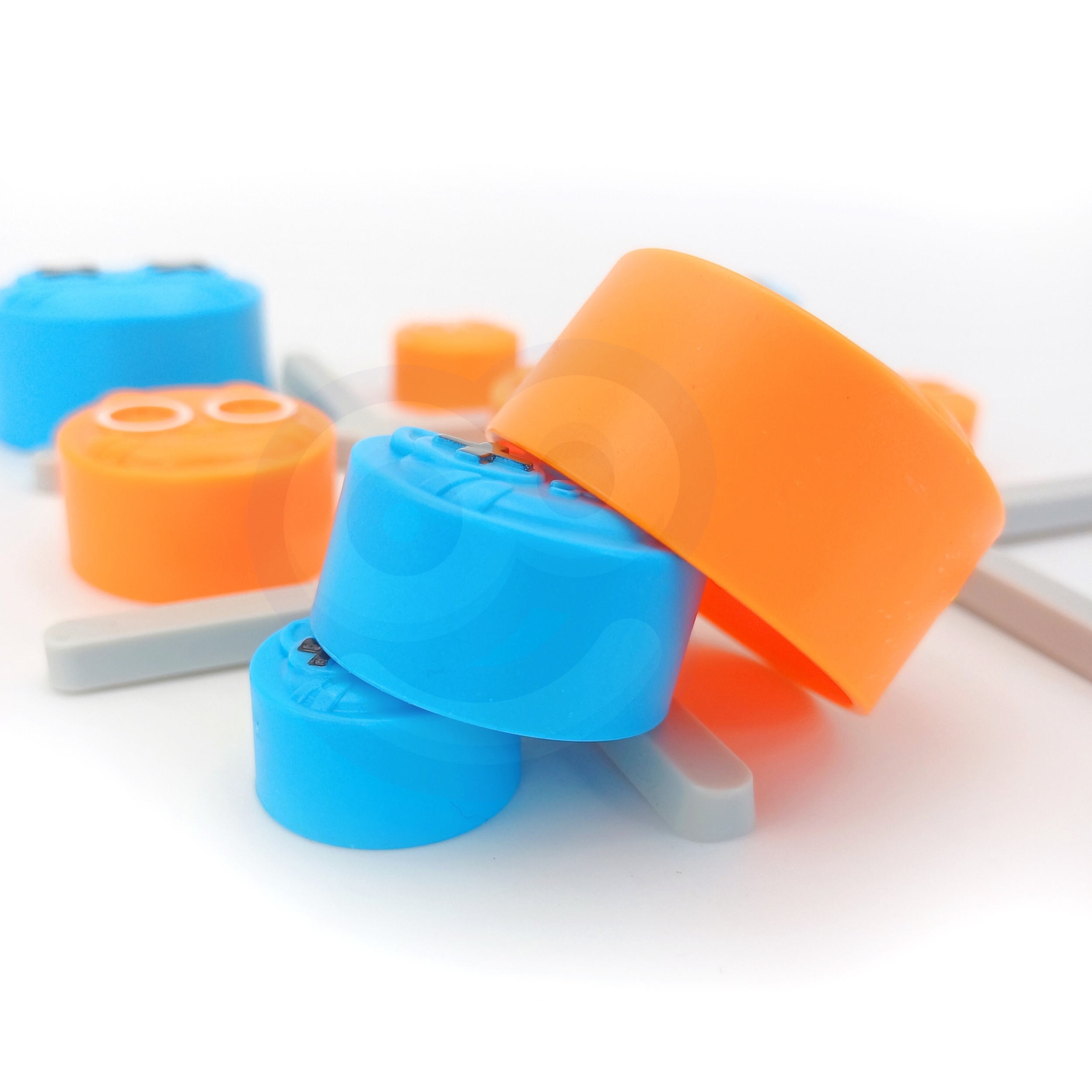 Klasikinė kryžiukų–nuliukų versija kelioniniame formate. Žaidėjai paeiliui deda savo žetonus į lentos langelius, siekdami sudaryti tris vienoje linijoje — horizontaliai, vertikaliai arba įstrižai. Užimtas langelis nebegali būti pakeistas, todėl svarbu numatyti kelis ėjimus į priekį.