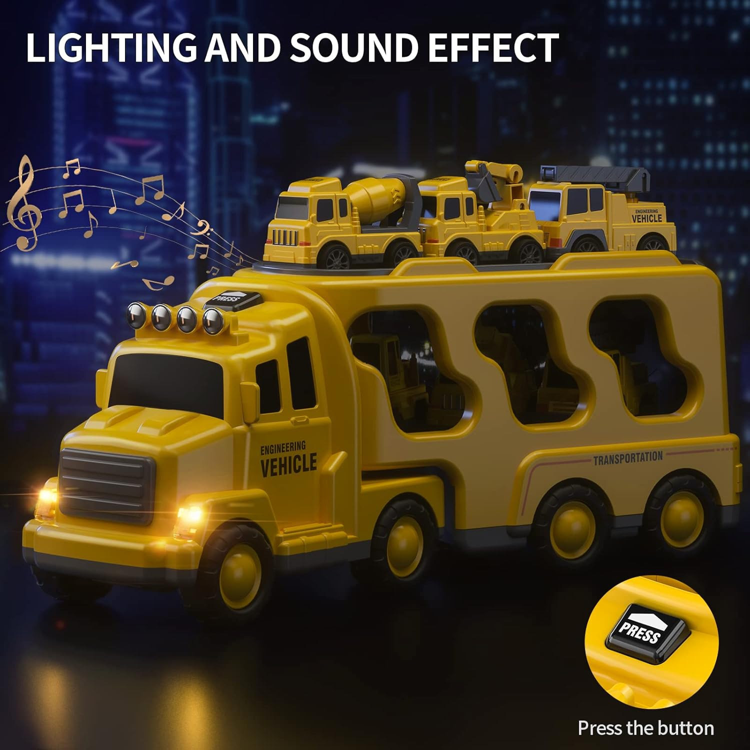 WOOPIE kelių pagalbos vilkiko rinkinys su 5 automobiliais – žaislas, kuris pradžiugins mažus automobilių ir statybinės technikos gerbėjus. Jis suteiks valandų valandas įtraukiančio žaidimo ir skatins vaiko vaizduotę. Rinkinį sudaro 5 transporto priemonės: didelis vilkikas, kuris gali būti naudojamas kaip laikymo vieta mažesniems automobiliukams, ekskavatorius, betono maišyklė, kranas ir buldozeris. Mažesni statybiniai automobiliai turi inercinę pavarą, todėl vaikai gali juos judinti savarankiškai – tai suteikia dar daugiau įdomumo žaidimui.