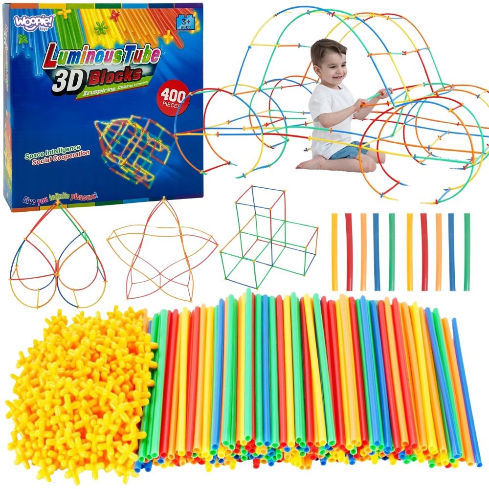WOOPIE konstruktoriaus rinkinys „Šviečiantys šiaudeliai“ – 400 vnt. – atraskite beribės vaizduotės pasaulį su šiais šviečiančiais konstravimo šiaudeliais. Šis inovatyvus 400 spalvotų, tamsoje šviečiančių vamzdelių ir jungčių rinkinys leis jūsų vaikui kurti fantastiškas transporto priemones, konstrukcijas, robotus ir daugybę kitų kūrybinių projektų. Žaislas ne tik traukia akį, bet ir skatina vaizduotę bei lavina rankų įgūdžius.
