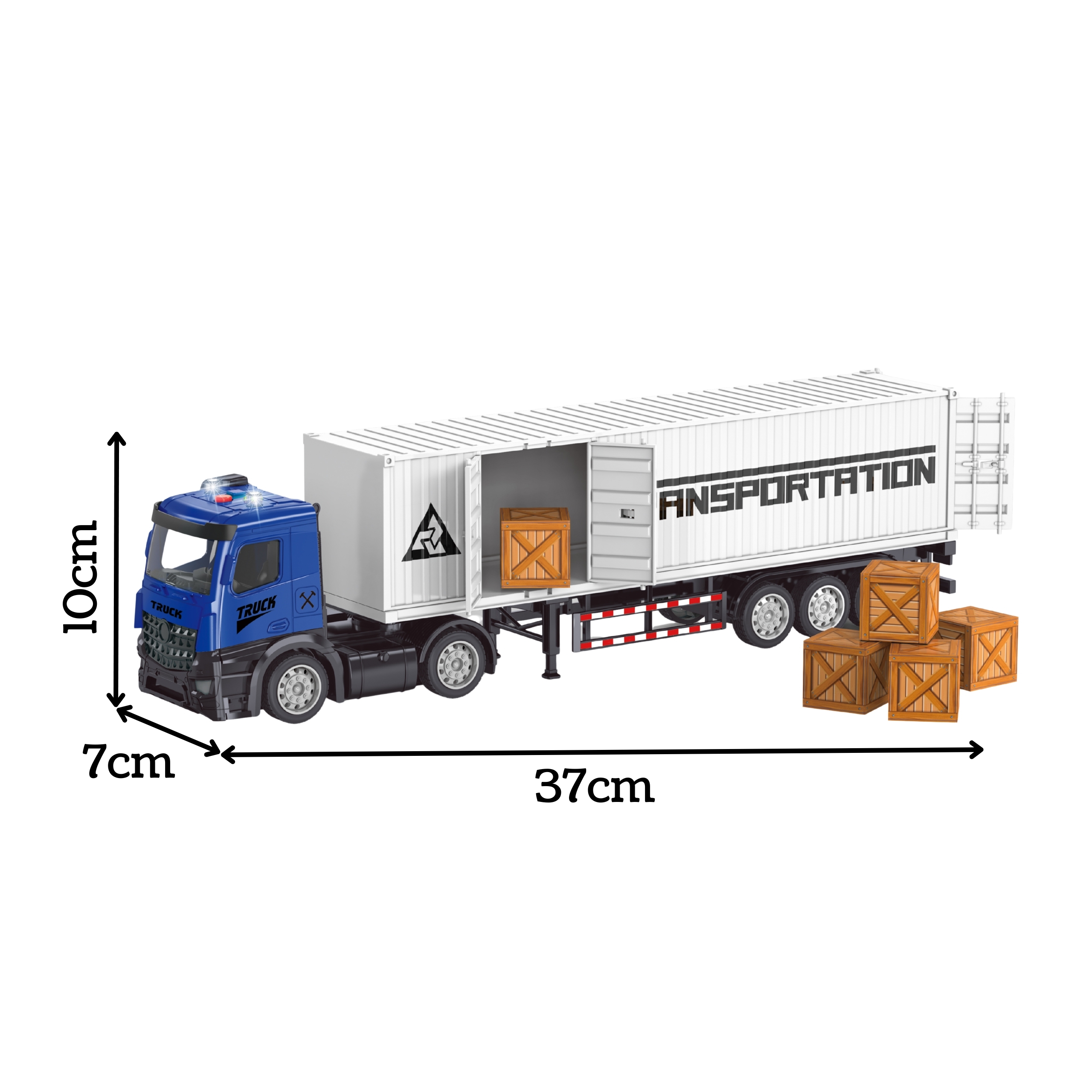 Krovininis Sunkvežimis iš markės Woopie z konteinerizuotas tai suteikia valandų valandas žavingo linksmumo, derinant realizmą su funkcionalumu. Dėl apšvietimo ir garso efektų vaikai gali jaustis tikrais transporto vairuotojais. Inercinis važiavimas (pull-back) įgalina dinamišką vairavimą, o atidaromas konteineris ir pakrovimo dėžės leidžia sukurti realistiškus scenarijus. Tai ne tik žaislas, bet ir pagalbinė priemonė vaiko motorikos, vaizduotės ir kūrybiškumo ugdymas!