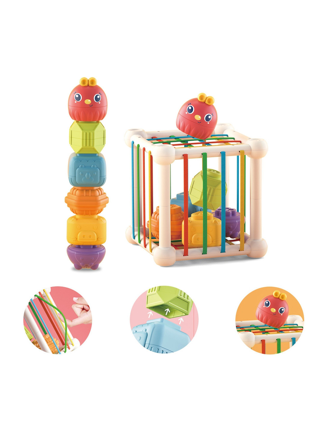 Lankstus sensorinis kubelis iš WOOPIE skatins jūsų vaiko vystymąsi! Žaidžiant su šiuo edukaciniu kubeliu, vaikas įkiša ir išima detales. Žaisdamas vaikas lavina savo pojūčius ir gerina rankų miklumą. Kiekvienas iš 6 kietų blokelių išsiskiria, skatindamas vaiko smalsumą – jis nori juos ištraukti ir vėl įdėti į rūšiuoklę. Blokelius galima sujungti ir pastatyti bokštą. Blokeliai turi skirtingas formas ir tekstūras, kurios lavina sensorinius įgūdžius, protą ir skatina eksperimentavimą. Be to, kai vaikas paauga, blokelius galima naudoti spalvų mokymuisi. Kiekvienas blokelis turi skirtingą numerį, nurodantį, kokia tvarka bokštas turi būti surenkamas, todėl tai puiki priemonė skaičiavimo mokymuisi. Dar viena puiki blokelių savybė – kiekvienas blokelis gali būti naudojamas kaip barškutis. Kubelio rūšiuoklė turi lankstų, spalvingą guminį tvirtinimą, kuris malonus vaikams. Tai būtinas žaislas vaikams tiek ankstyvame, tiek vėlesniame amžiuje – žaislas, kuris tarnaus daugelį metų!