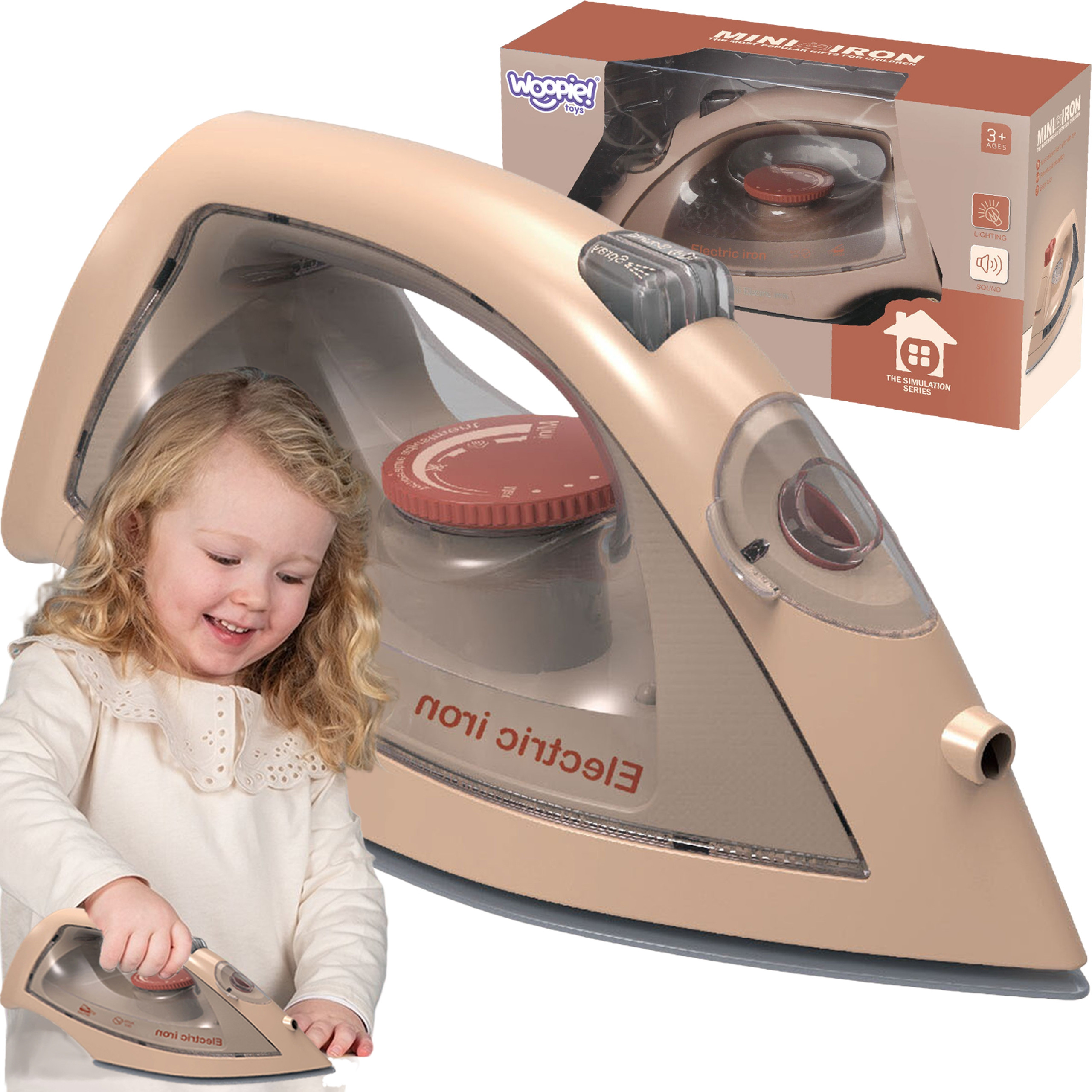 WOOPIE lygintuvas su purkštuvu puikiai imituoja tikrą lygintuvą, tačiau yra visiškai saugus vaikams, nes neįkaista. Žaislas turi daugybę funkcijų, kurios prideda žaidimo smagumo: šviečiantį LED šviesos efektą, garsinius efektus ir purškimo funkciją, kai lygintuvas pripildomas vandens. Žaislas veikia ir be vandens. Tai puikus pasirinkimas vaikams, kurie mėgsta imituoti tėvus kasdienėse veiklose.