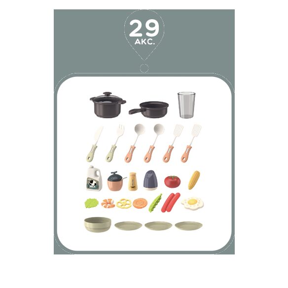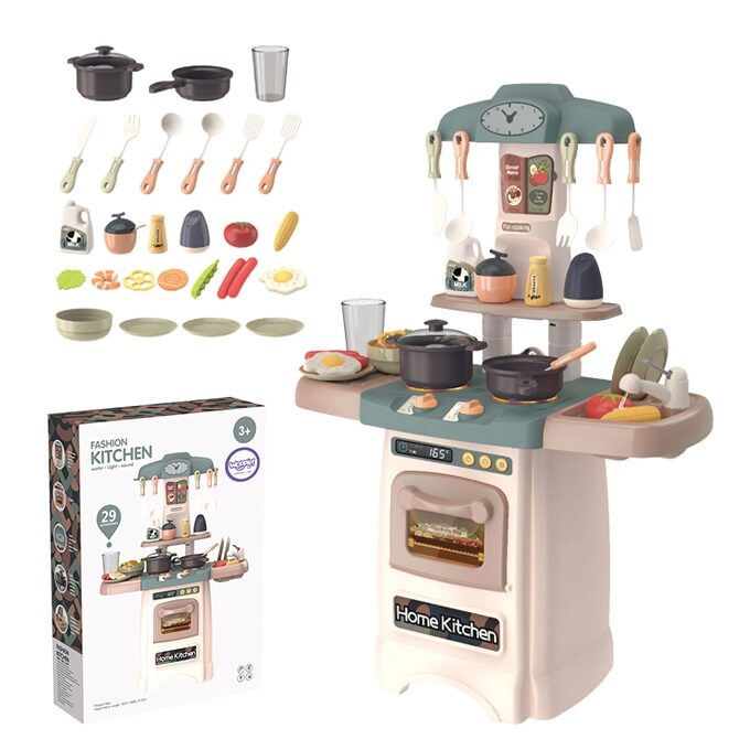 Pagrindinis » Parduotuvė » WOOPIE madinga virtuvė su vandens cirkuliacijos degikliu, šviesos garsu + 29 priedai.