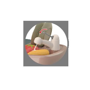 – judantys elementai – atidaroma orkaitė, čiaupas ir virtuvės rankenėlės,