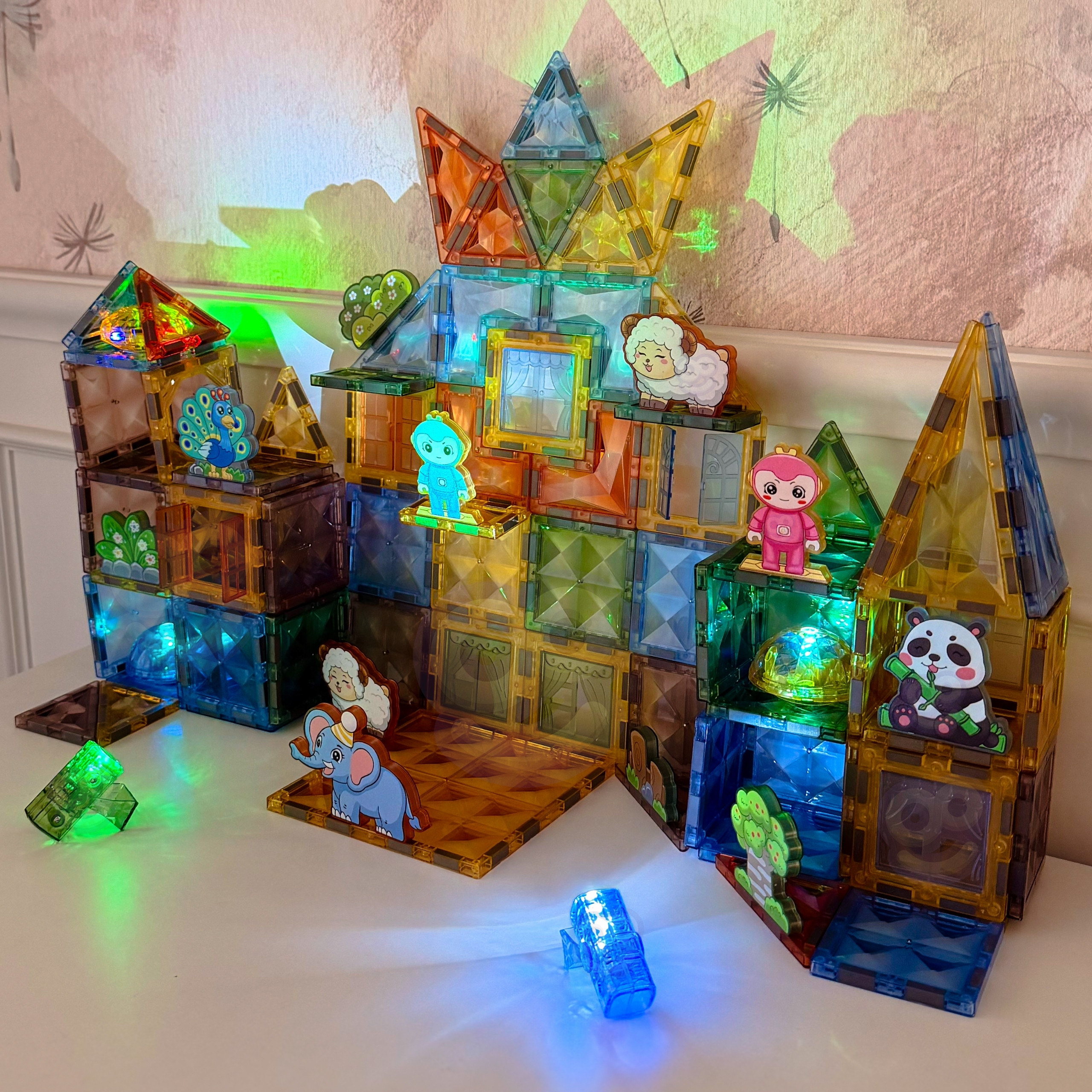 magnetinės kaladėlės, kurios šviečia – suteikia žaidimui išskirtinį efektą