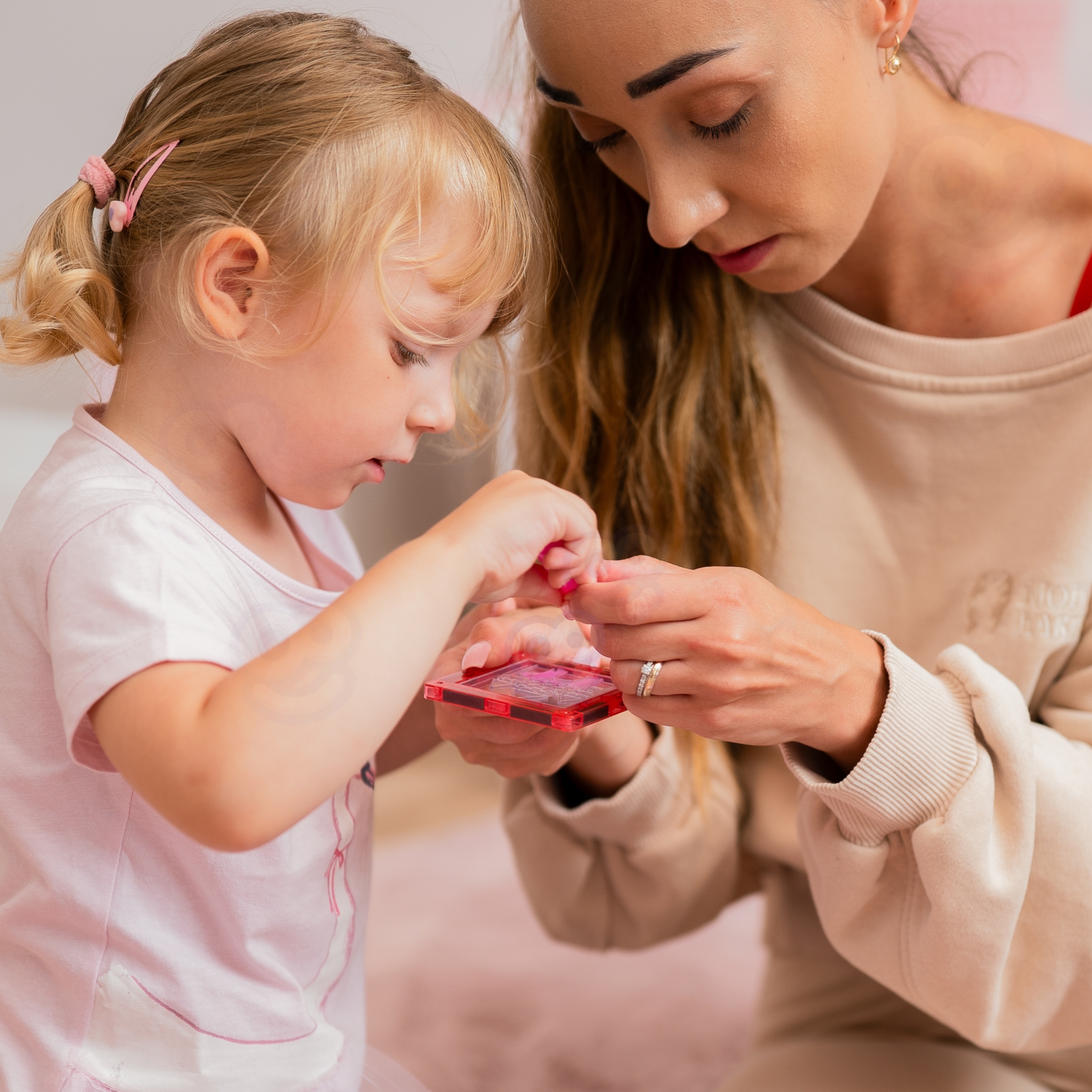 Žadinkite savo vaiko vaizduotę su šiuo magnetinių kaladėlių rinkiniu , skirtu mažiesiems princesių, vienaragių ir pasakų šalių mylėtojams. Šį unikalų rinkinį sudaro 58 tiksliai pagamintos įvairių formų ir funkcijų detalės – visos jos turi įmontuotus magnetus , kad būtų galima greitai, patvariai ir saugiai sujungti. Tai puikus kūrybinio žaidimo ir lavinimo derinys, lavinantis rankinius įgūdžius, loginį mąstymą ir erdvinę vaizduotę.