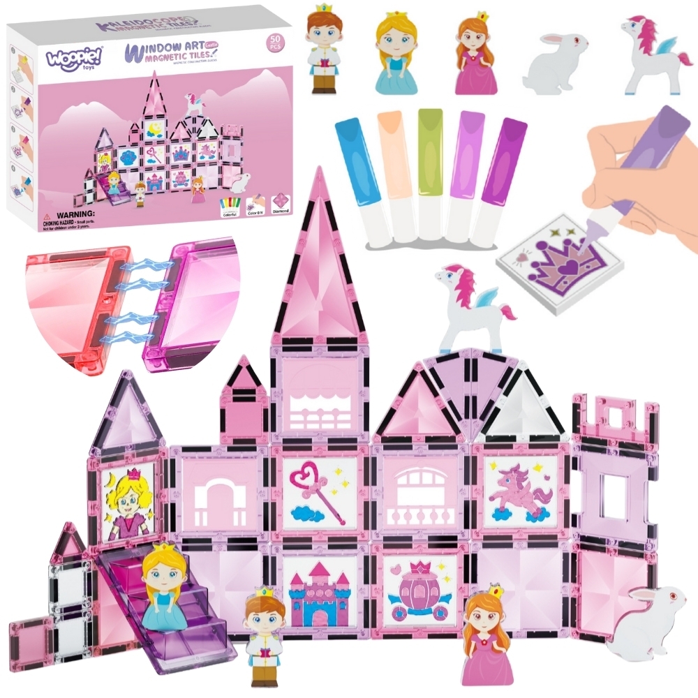 WOOPIE magnetinių kaladėlių Princesės pilies rinkinys 50 vnt.