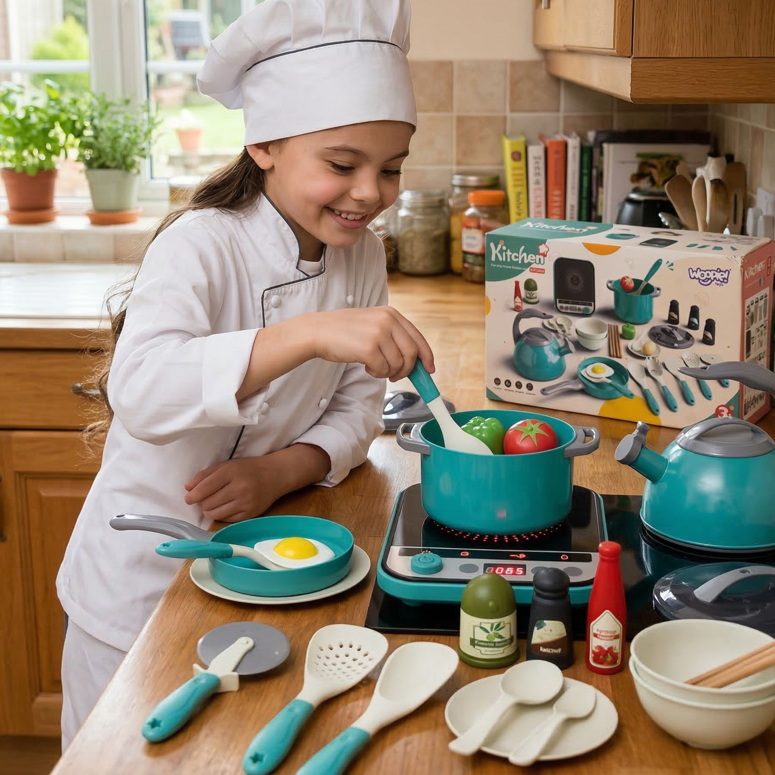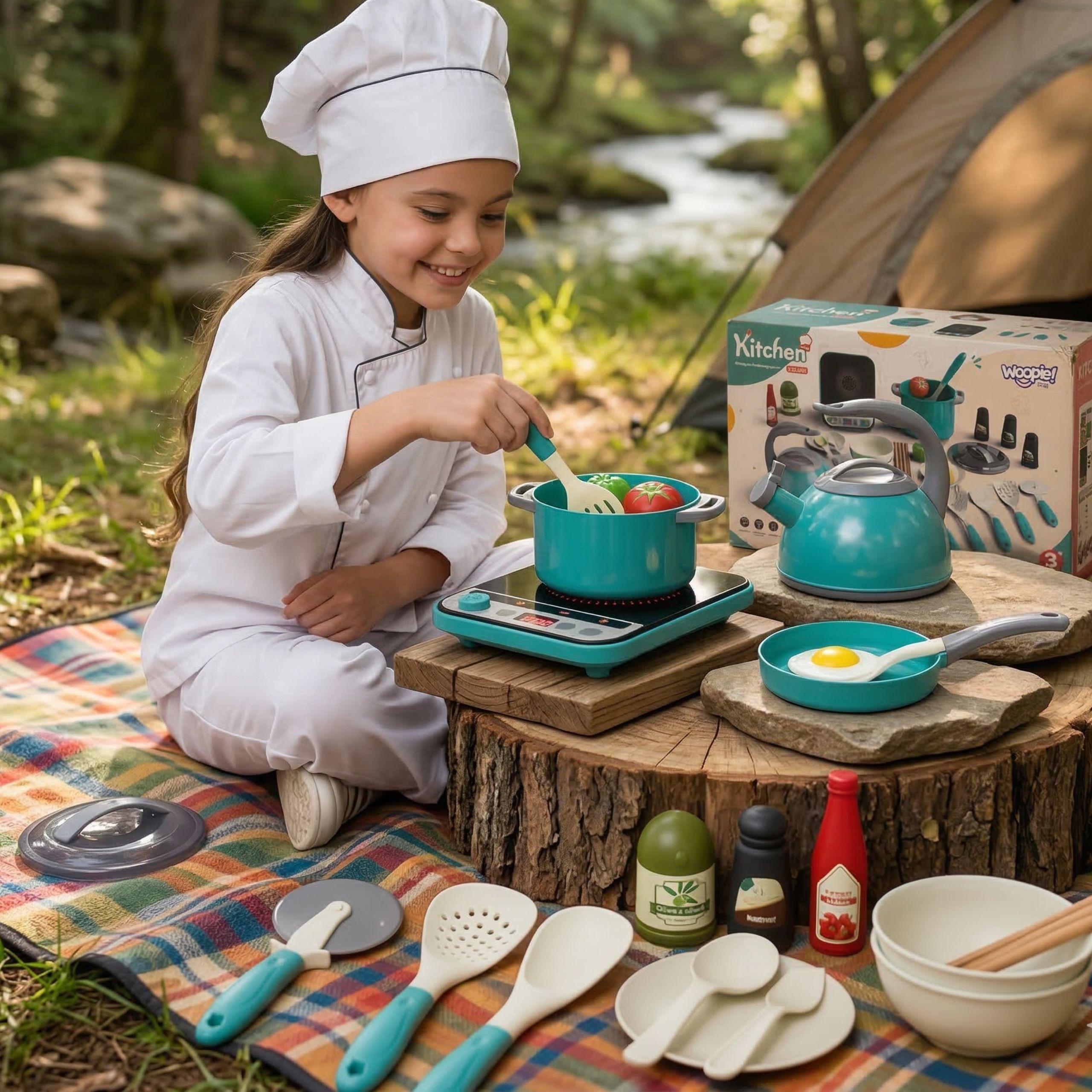 Šis išsamus „Woopie“ virtuvės žaidimų rinkinys – puiki dovana kiekvienam mažajam šefui! Žaislas leidžia vaikams imituoti suaugusiuosius ir žaisti vaidmenų žaidimus, lavinant kūrybiškumą, vaizduotę ir rankų įgūdžius. Rinkinyje yra viskas, ko reikia svajonių patiekalams gaminti. Komplekte rasite net 30 dalių, įskaitant puodus, keptuvę su keptu kiaušiniu, virdulį ir net indukcinę kaitlentę. Papildomi priedai, tokie kaip stalo įrankiai, daržovės ir prieskoniai, daro žaidimą itin tikrovišką ir įtraukiantį. Tai puikus būdas mokytis per žaidimą, lavinti socialinius įgūdžius ir leisti laiką su tėvais.