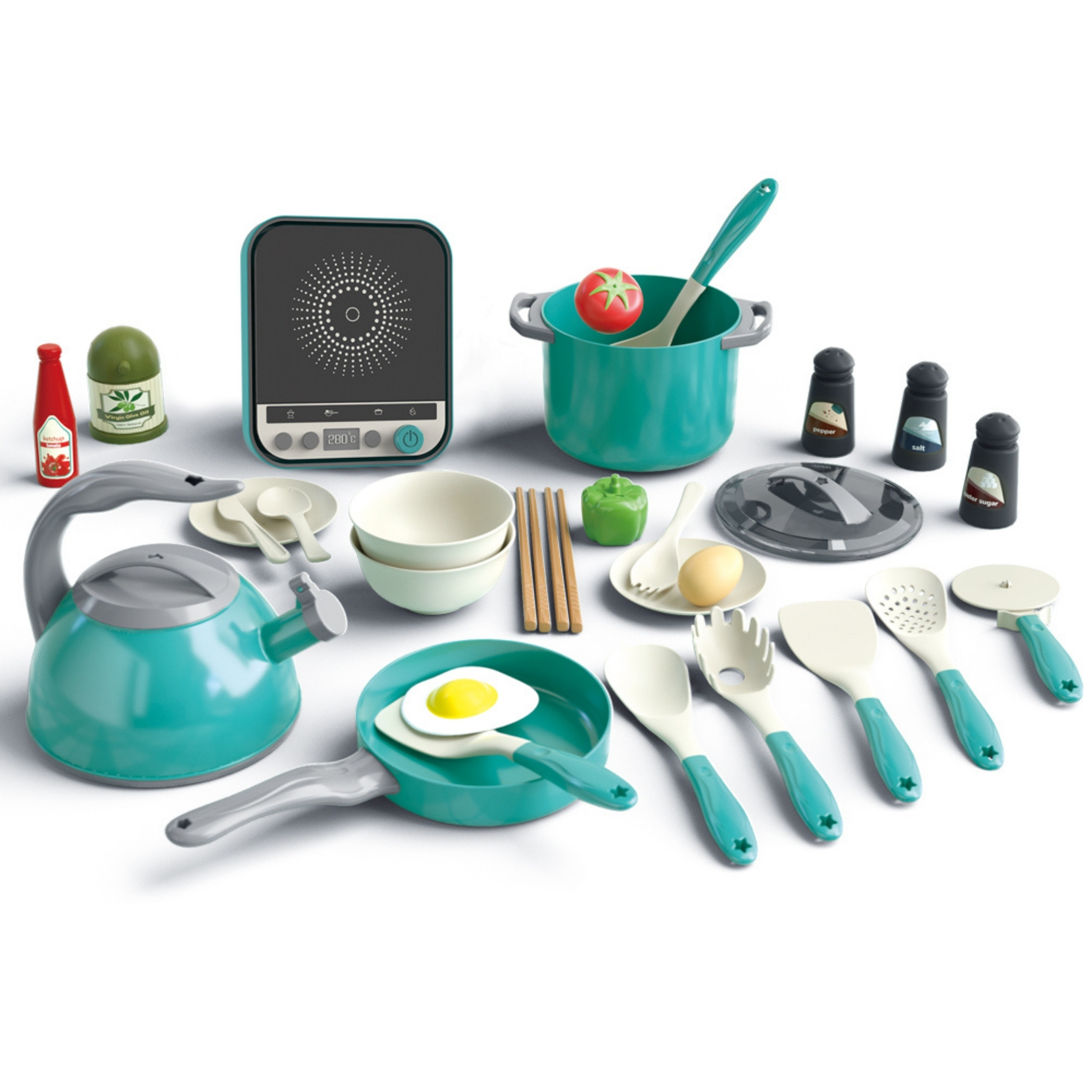 WOOPIE „Mažojo šefo“ rinkinys – indukciniai puodai, keptuvė, virdulys, žalias, 30 vnt.