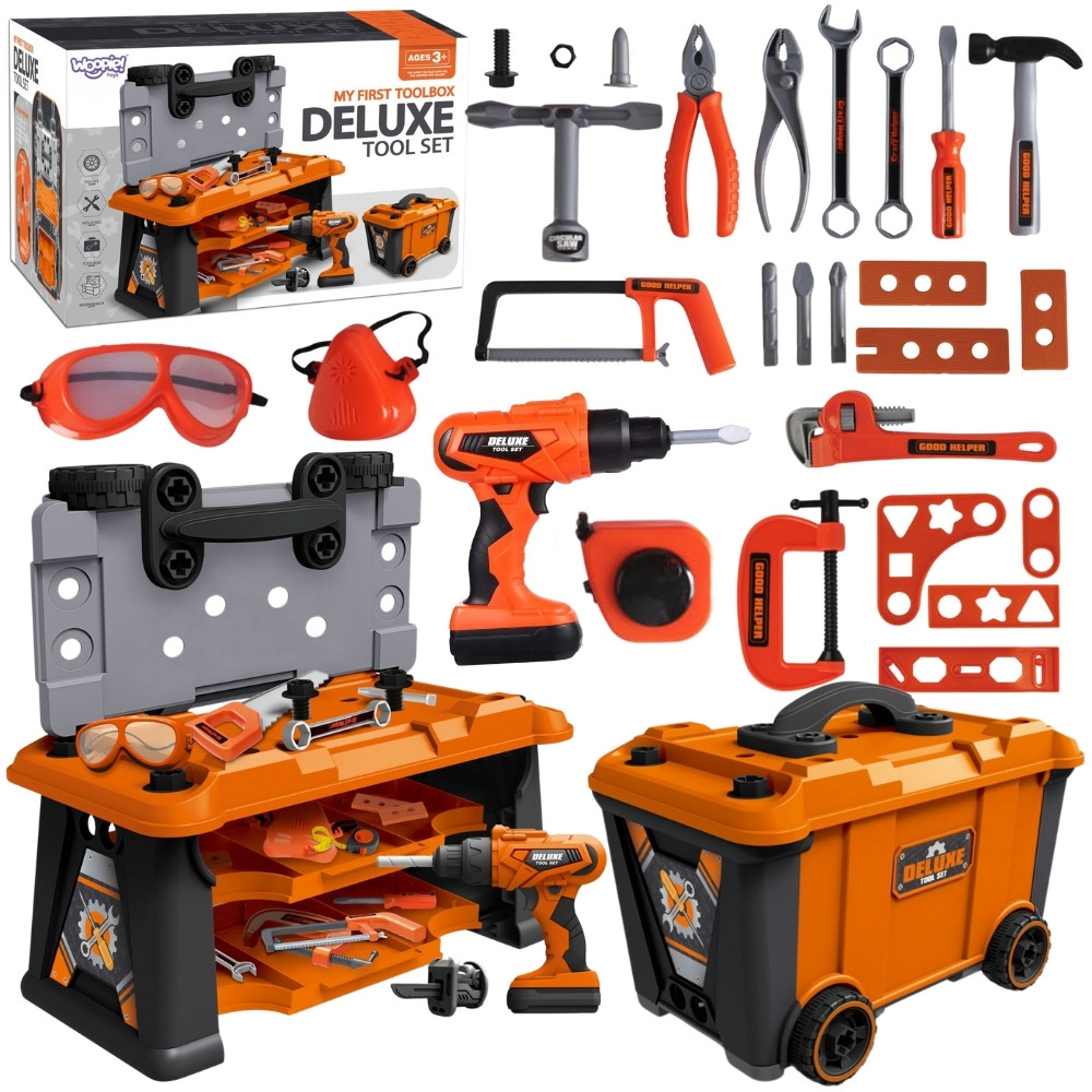 WOOPIE mobili įrankių dėžė – dirbtuvės 2 viename, 65 vnt. – pagaminta iš tvirto plastiko su oranžiniais, juodais ir pilkais elementais, leidžia vaikams saugiai ir lengvai tapti tikru meistru. Šis funkcionalus 2 viename rinkinys ne tik yra dirbtuvės, bet ir riedanti lagaminėlis su rankena, tapsiantis mėgstamu žaidimų draugu. Praktinis rinkinys skatina kūrybinį vaidmenų žaidimą ir padeda lavinti rankų įgūdžius žaidimo metu.