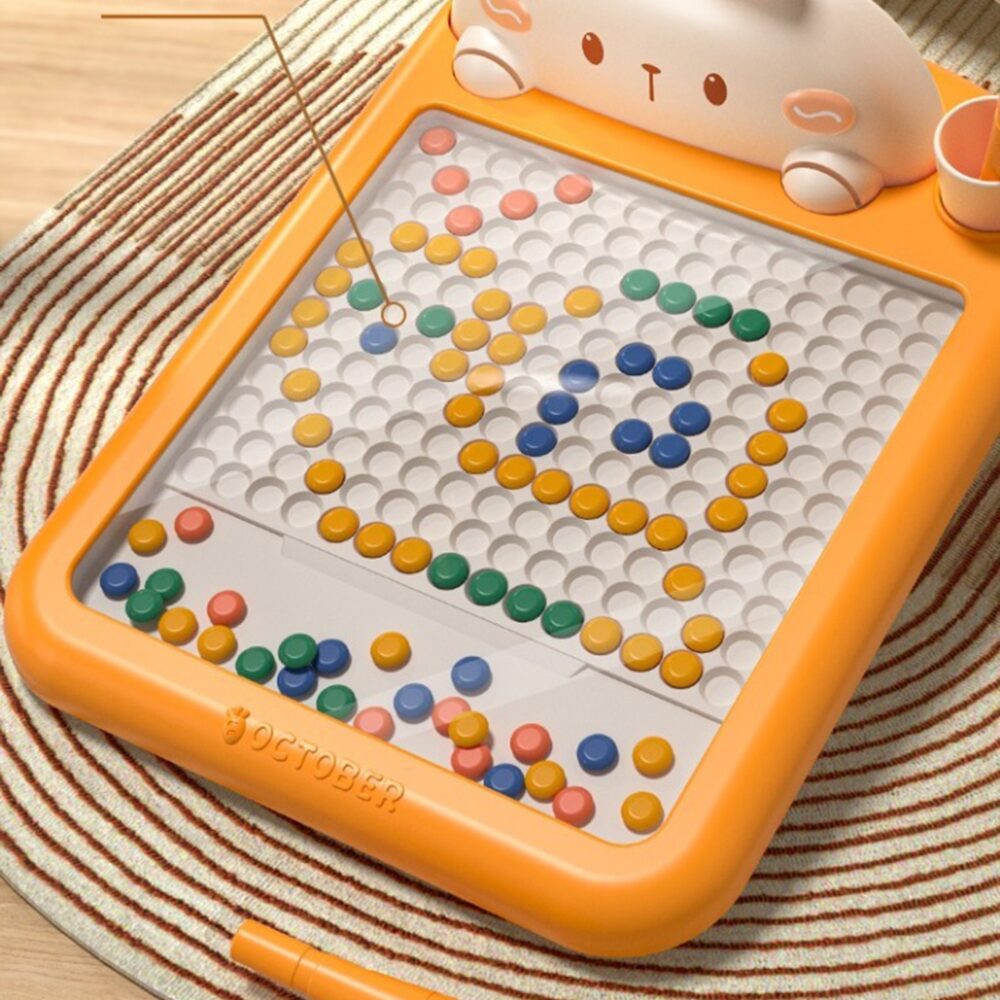 WOOPIE magnetinė lenta „ MagPad“ atveria jūsų vaikui duris į kūrybiškumo ir lavinimo pasaulį. Ši unikali lenta leidžia jūsų vaikui kurti unikalius raštus ir mozaikas . Be pačios lentos, rinkinyje yra du morkos formos magnetiniai žymekliai ir 70 magnetinių sagų kūrybai. Vienintelės ribos yra jų vaizduotė ir kūrybiškumas – jūsų mažylis gali laisvai kurti raštus pagal savo idėjas. Sagos yra tvirtos ir patvarios , o surinkimas yra intuityvus ir paprastas . Šis rinkinys yra ne tik smagus, bet ir puiki priemonė mokytis ir lavinti rankinius įgūdžius, susikaupimą ir vaizduotę.