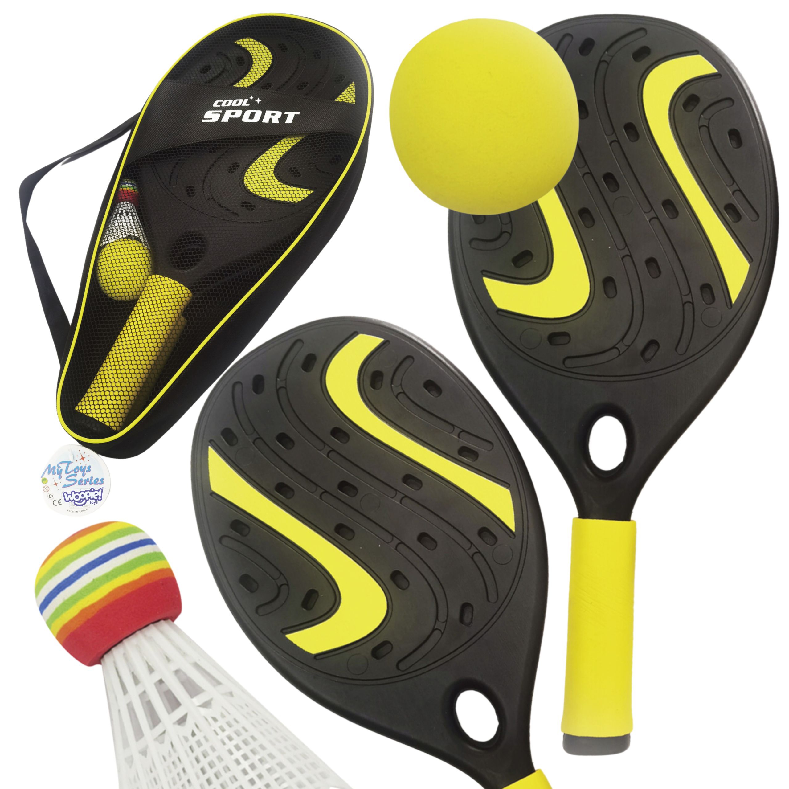 Šis WOOPIE rakečių rinkinys – puikus būdas aktyviai praleisti laiką šiltomis dienomis. Gražus dizainas ir aukšta kokybė garantuoja smagias pramogas! Rinkinį sudaro dvi patvarios raketės, minkštas putplasčio kamuolys ir plunksninė – tad su savo WOOPIE raketėmis galėsite žaisti įvairius sportinius žaidimus! Patogiam transportavimui ir laikymui rinkinys supakuotas aukštos kokybės dėkle su užtrauktuku.