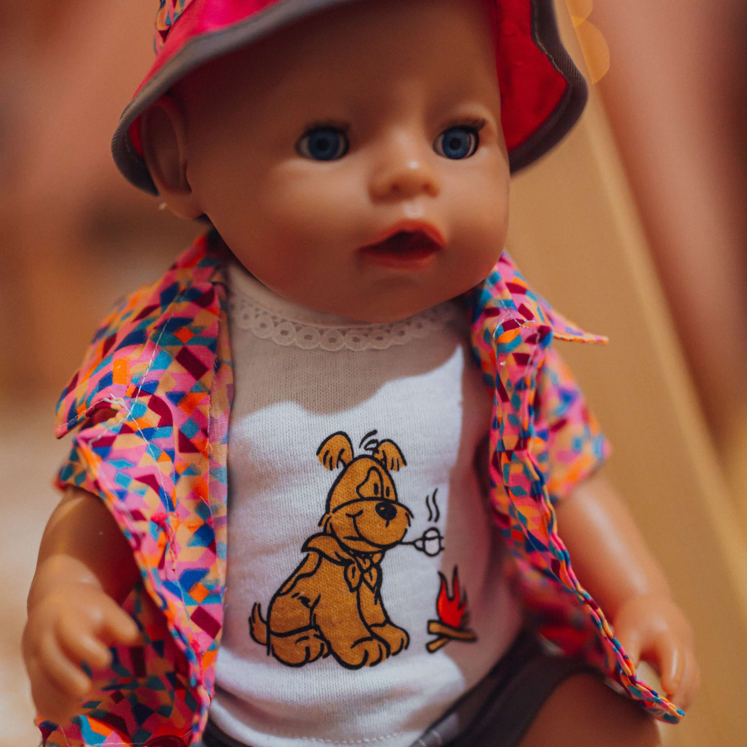 Pagrindinis » Parduotuvė » WOOPIE „Royal“ lėlės drabužių rinkinys – spalvinga striukė ir kepurė (43–46 cm lėlėms)