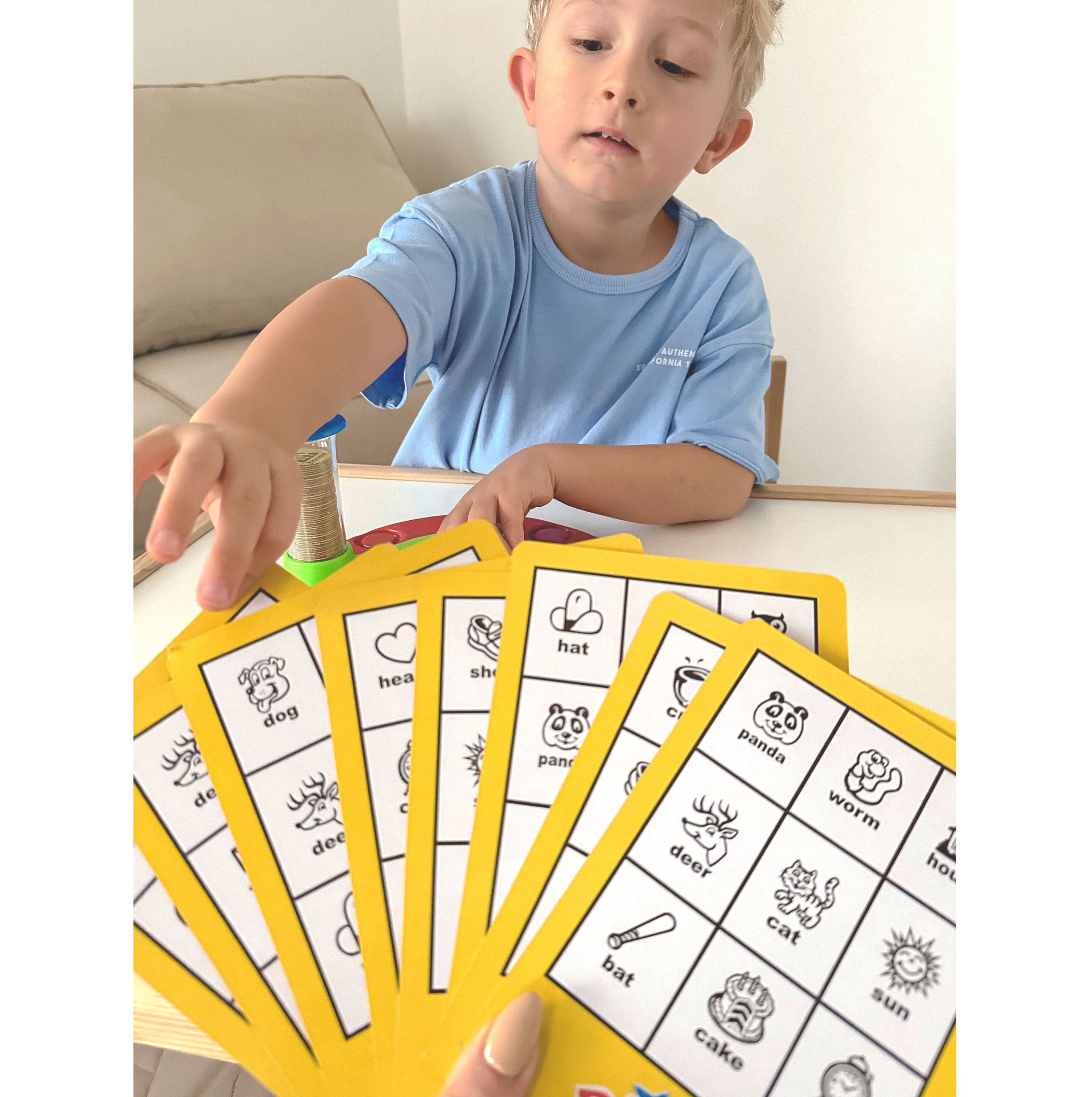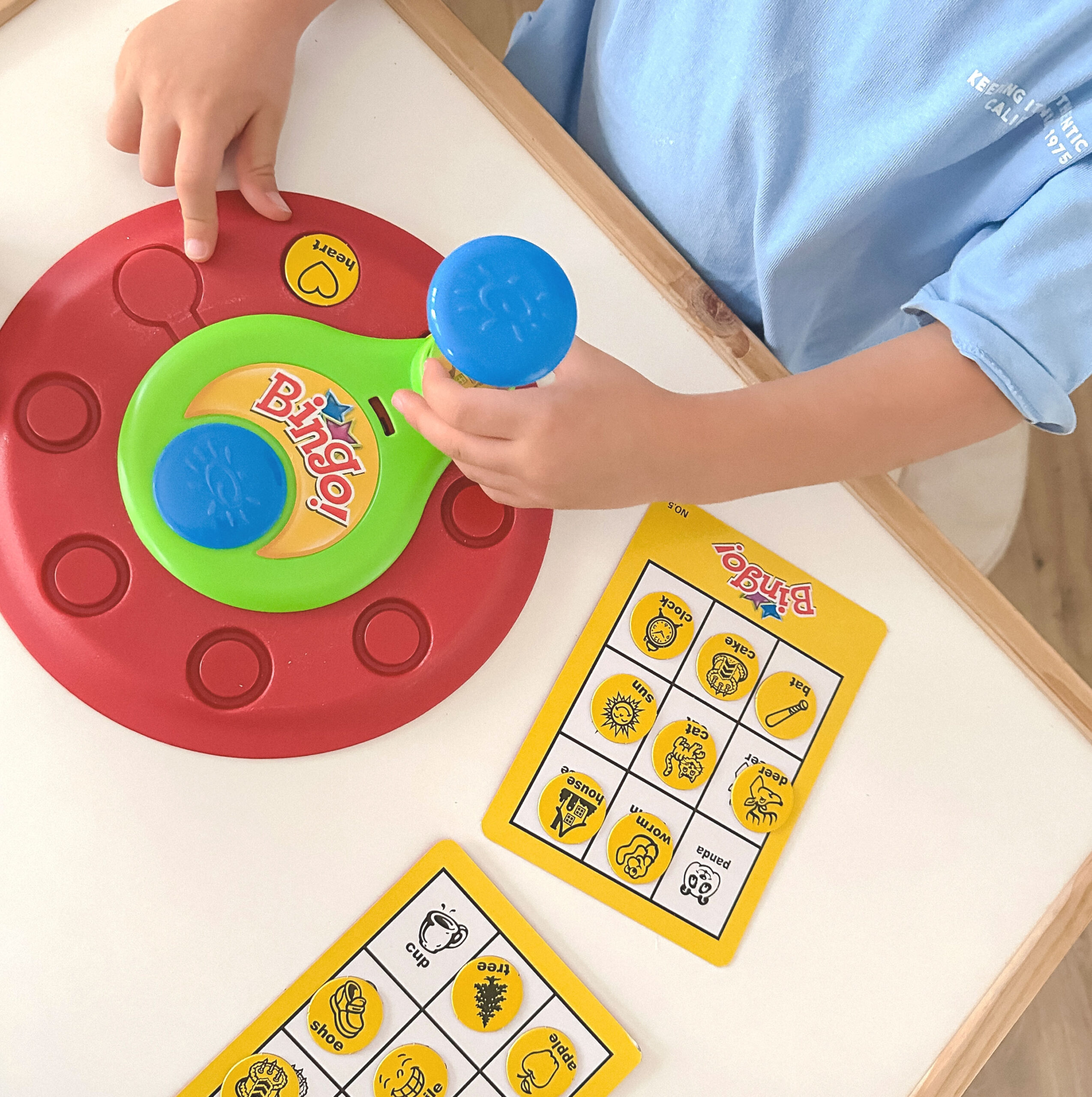 „WOOPIE“ prekės ženklo BINGO žaidimas puikiai tinka ikimokyklinio amžiaus ir pradinukams, nes jame naudojami tiek paveikslėliai, tiek žodžiai. Žaidime pasukama Bingo rodyklė, kad vienu sukimusi išleistų septynis žetonus. Kai žaidėjai pamato žetoną, atitinkantį jų kortelės paveikslėlį, jie žodžiu pavadina daiktą paveikslėlyje, paima atitinkamą žetoną ir padeda jį ant kortelės šalia atitinkamo paveikslėlio. Pirmas žaidėjas, padengęs visus savo kortelės paveikslėlius atitinkančiais žetonais, šaukia „BINGO“ ir laimi žaidimą.