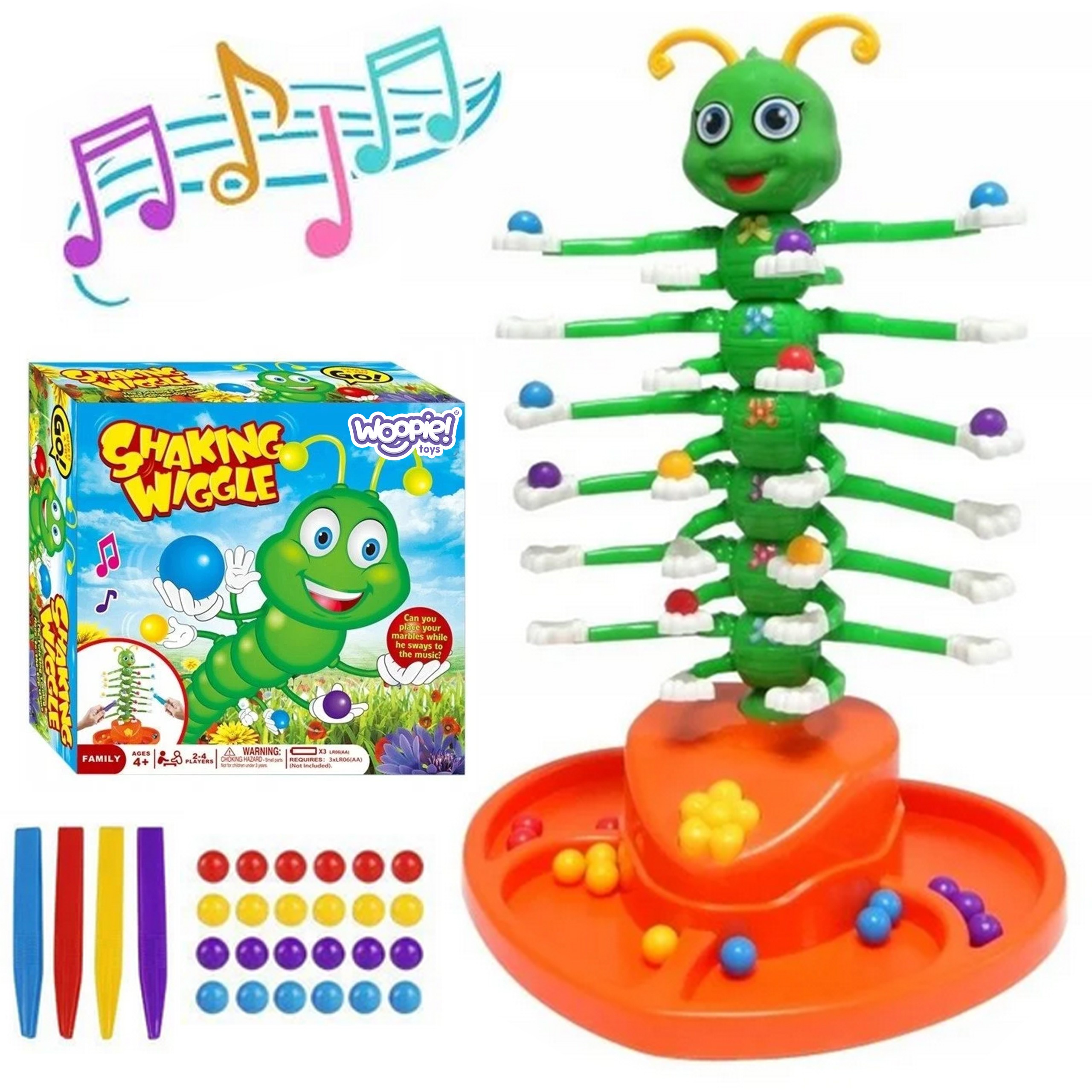 „WOOPIE“ šokantis šimtakojis – arkadinis žaidimas, puikiai tinkantis šeimos vakarams ar susibūrimams su mažaisiais. Kiekvieno žaidėjo užduotis – kuo greičiau sudėti visus savo kamuoliukus ant šimtakojo kojelių.