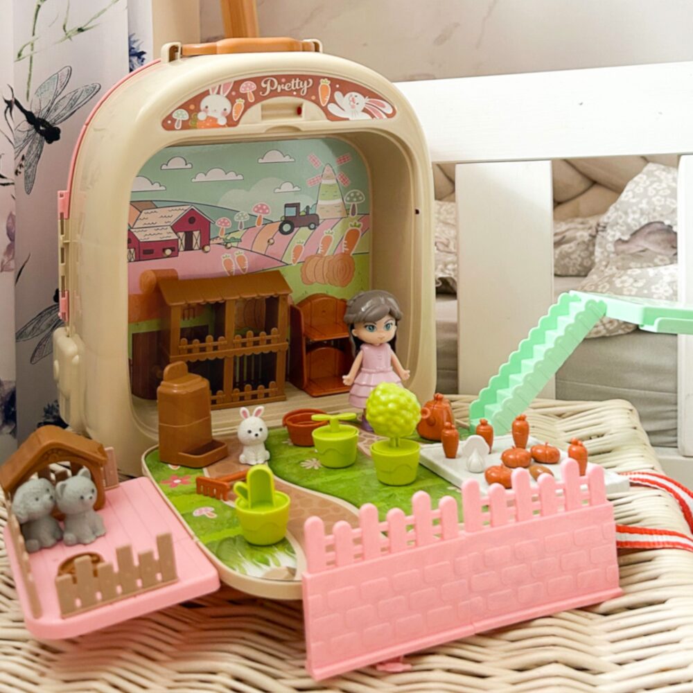 WOOPIE Triušis kuprinėje 3in1 Ūkio namas Sodas