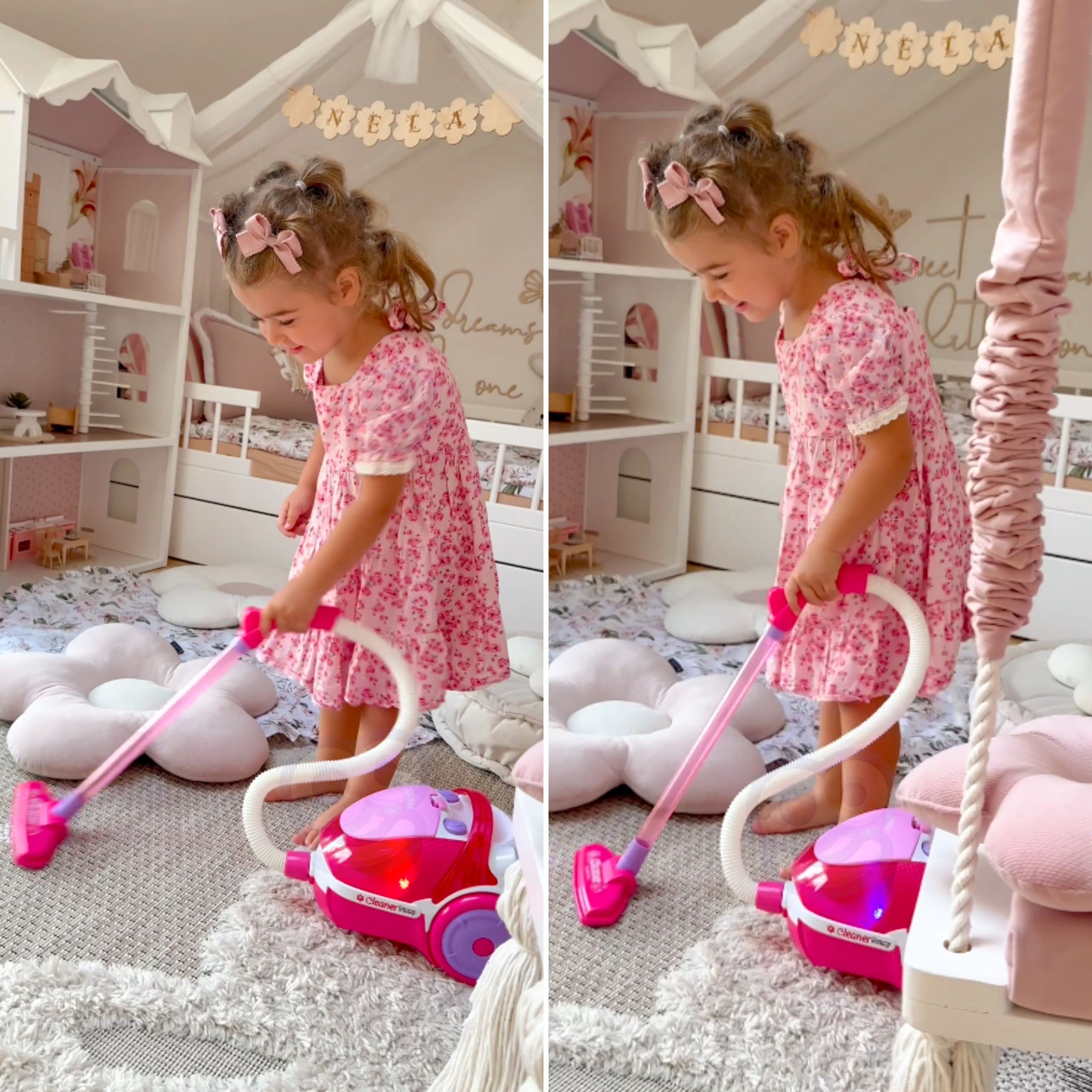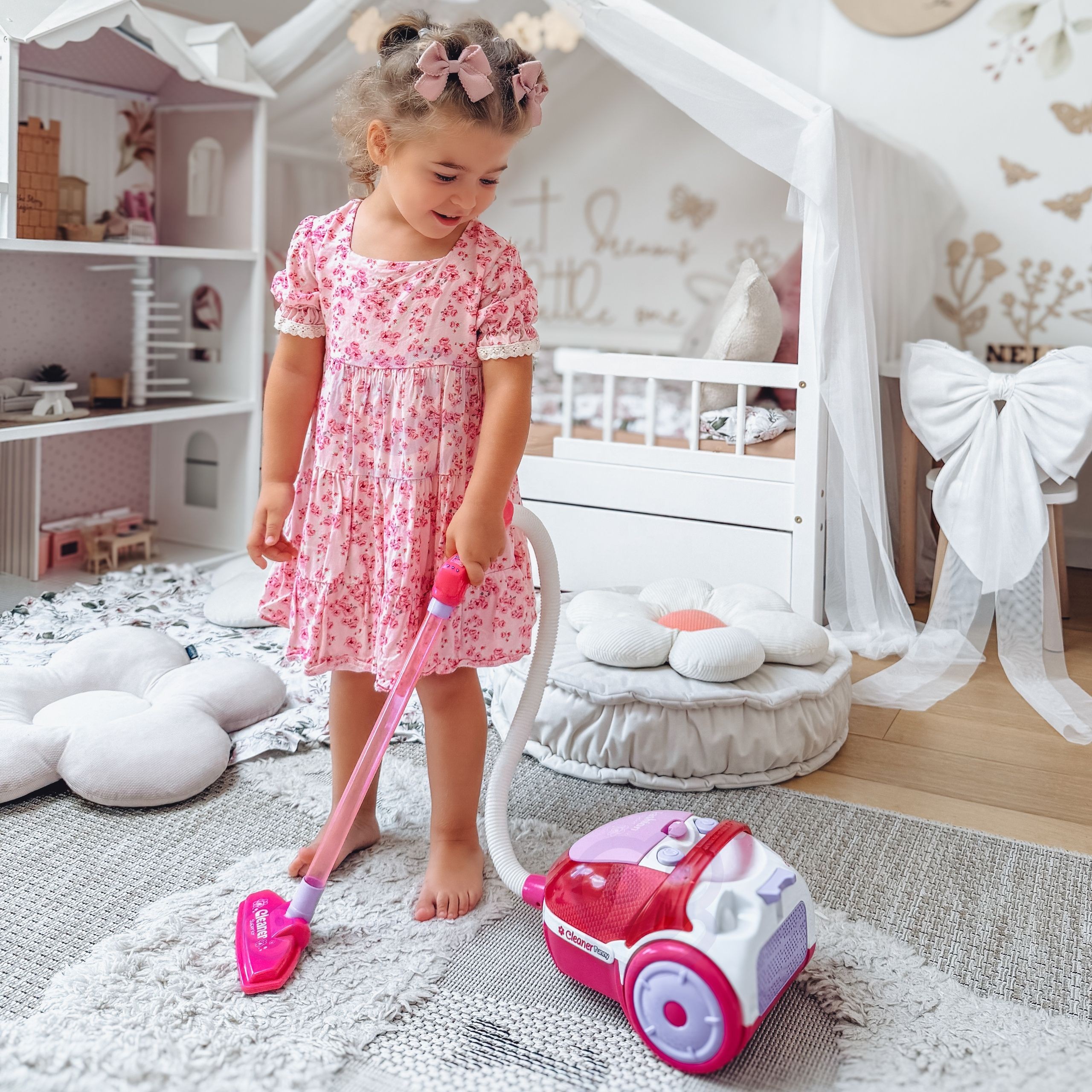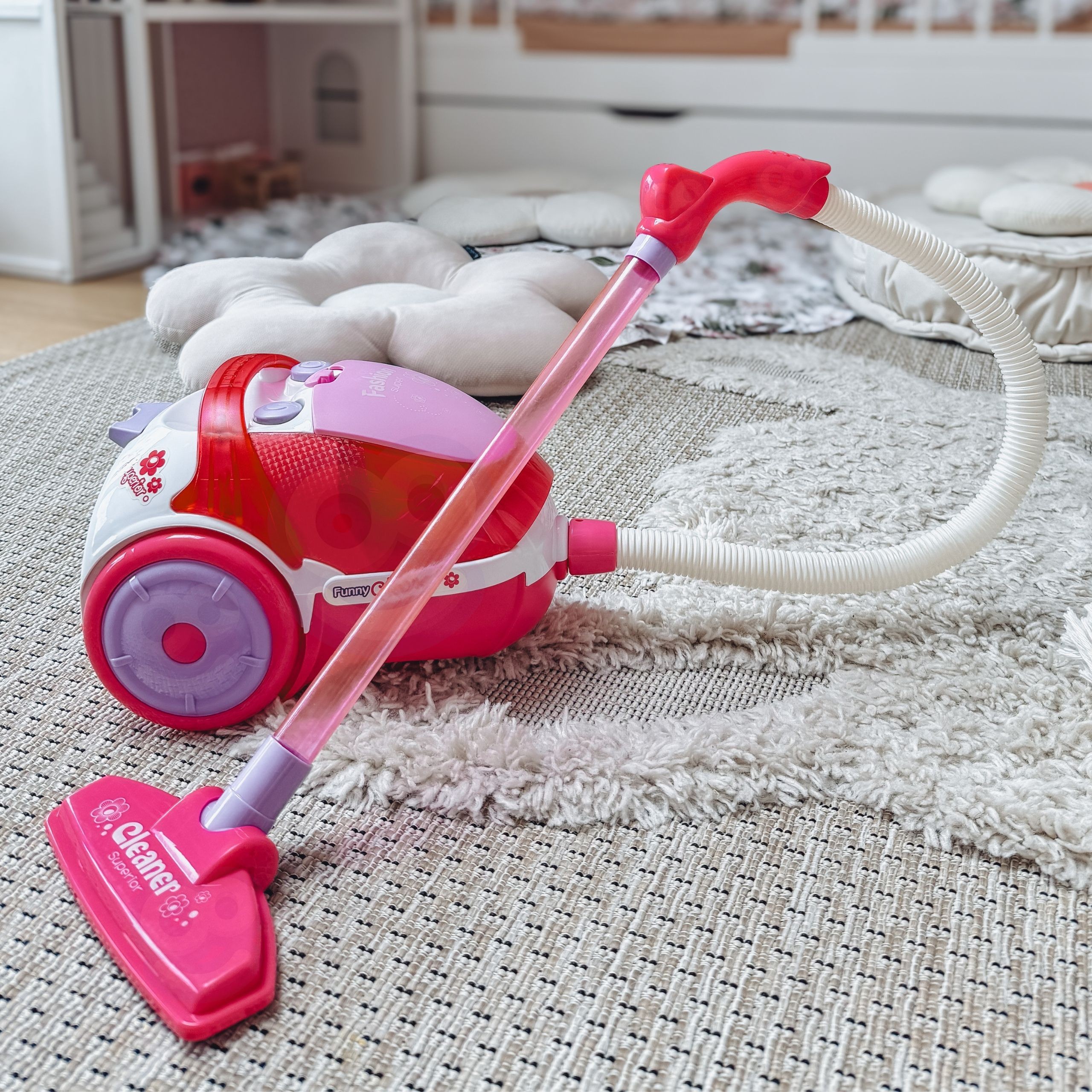 „WOOPIE“ rožinis dulkių siurblys – puikus pasirinkimas mažiesiems, kurie mėgsta mėgdžioti suaugusiuosius ir dalyvauti namų ruošoje. Tikra siurbimo funkcija bei realistiški garsai suteikia žaidimui autentiškumo ir dar daugiau džiaugsmo.