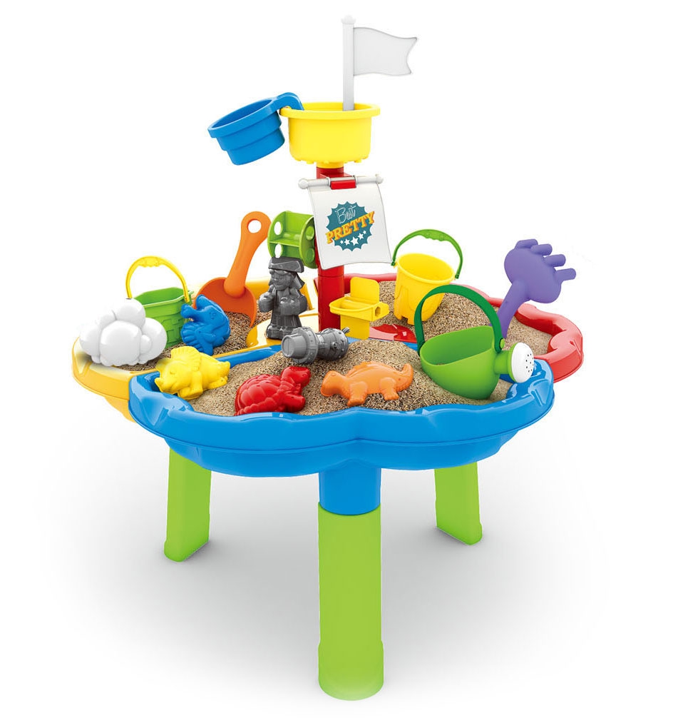 Lentelė buvo padalinta į tris skyrius – atskirai vandeniui, smėliui ir žaidimų erdvei. Papildomas 13 priedai tai suteikia dar daugiau linksmybių! Komplektas puikiai tinka tiek namuose, tiek lauke –, pvz. paplūdimyje ar sode.