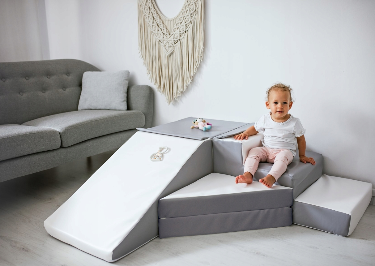 ✨SENSORY BLOCKS XXL žaidimų aikštelės putplasčio rinkinys, 4 dalys, pilka ir balta✨